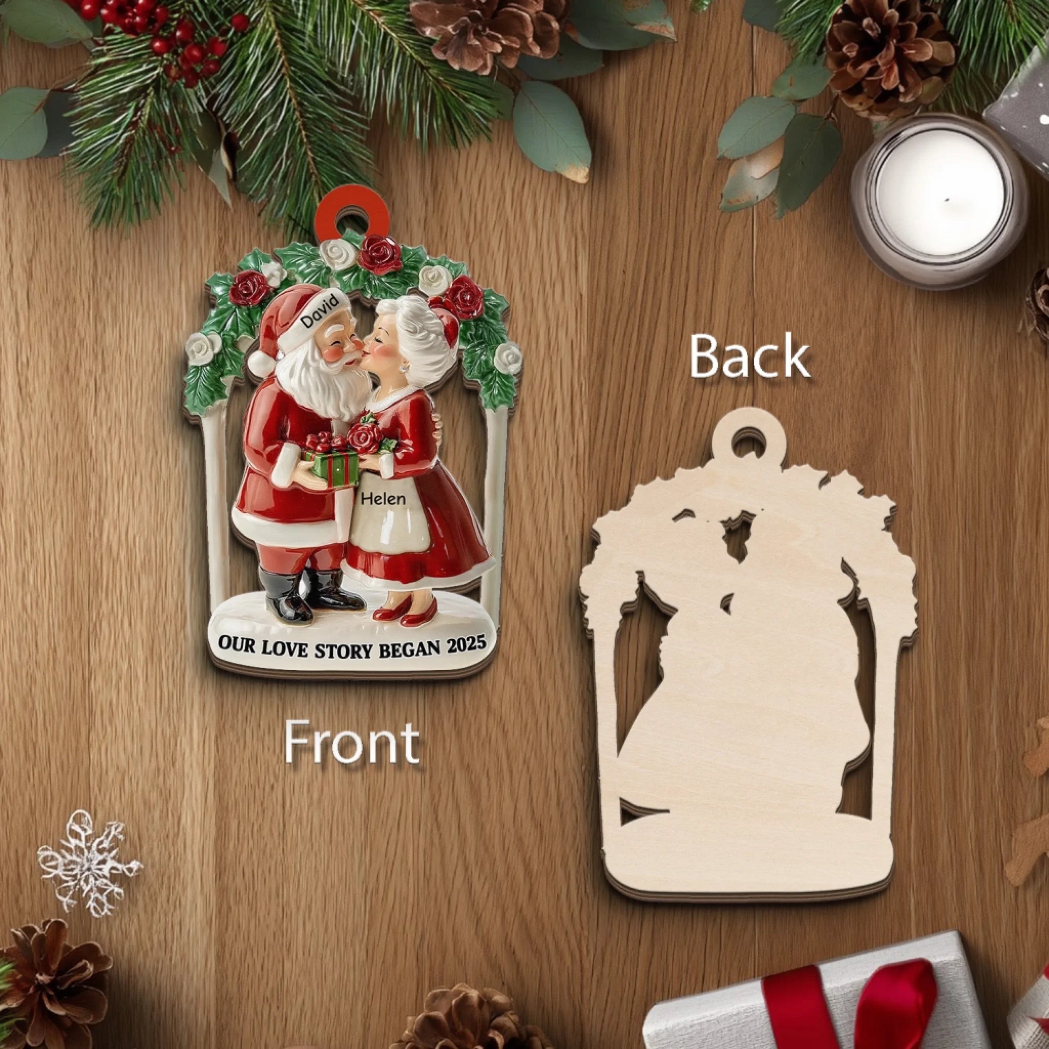 Personalized Couple Santa Claus Ornament – Custom Wooden Christmas Keepsake with Names & Year, Romantic Holiday Gift for Couples