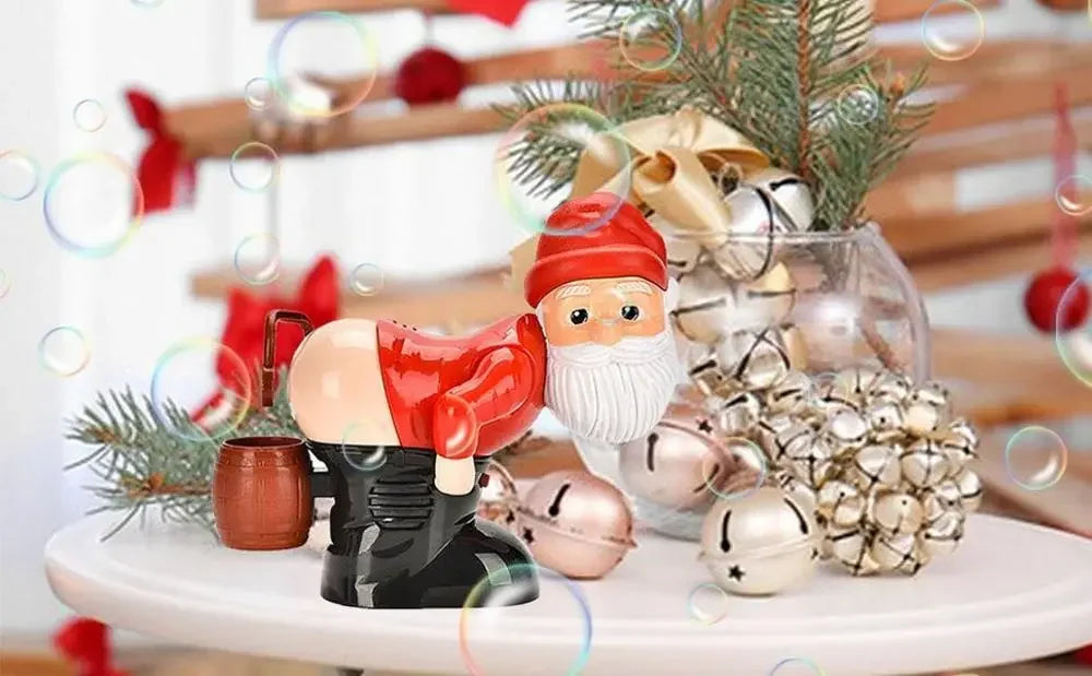 Perfecto para aquellos que aprecian una buena risa, no es sólo una agradable sorpresa para los niños sino para todos, incluidos tus amigos peludos. Deje que la peculiar máquina de burbujas con forma de Papá Noel aporte tonos vibrantes, melodías pegadizas y risas interminables a sus celebraciones.