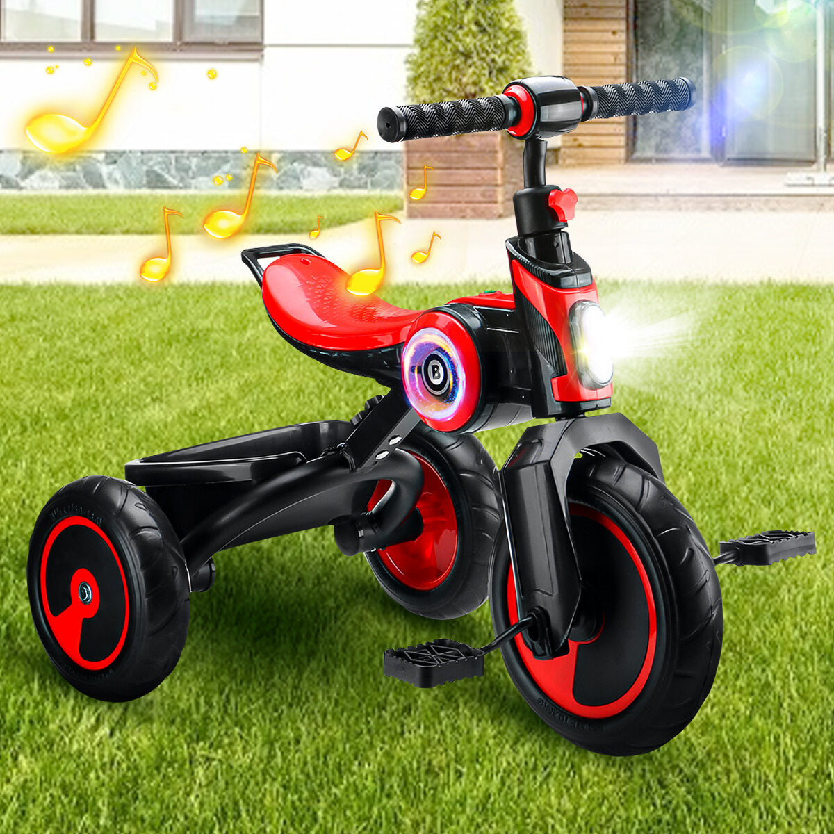 Triciclo para niños, cochecito portátil de 3 ruedas con bocina musical
