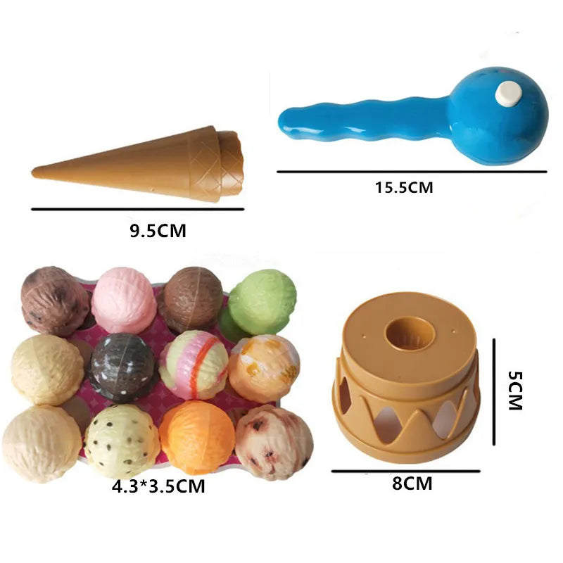 Acerca del juego de juguetes Ice Cream: El juego de juguetes Ice Cream es una fantástica adición a la cocina de juegos o al área de juegos imaginativa de su hijo. Con colores vibrantes y una variedad de formas de helado, este juego permite a los niños construir y apilar sus propias creaciones deliciosas. El set no es sólo un juguete; es una puerta de entrada a infinitas aventuras en el mundo de la fantasía.