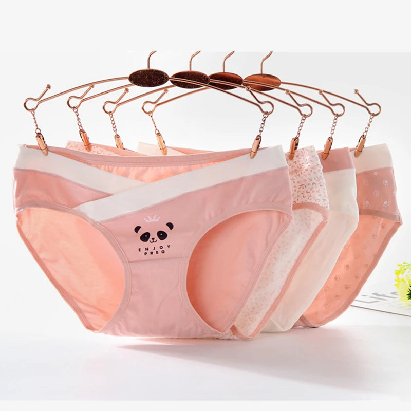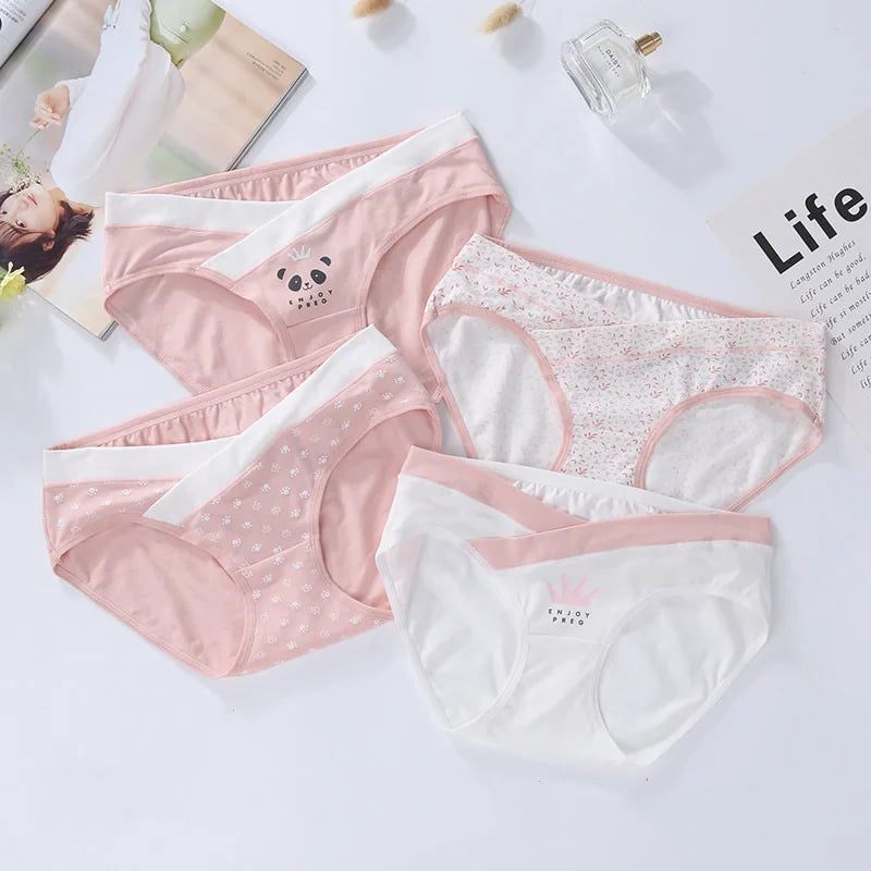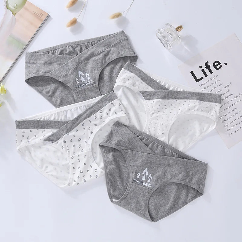 4 Pieces Women Cotton Low Waist Pregnancy Panties – Under Bump Maternity Underpants, Postpartum Briefs