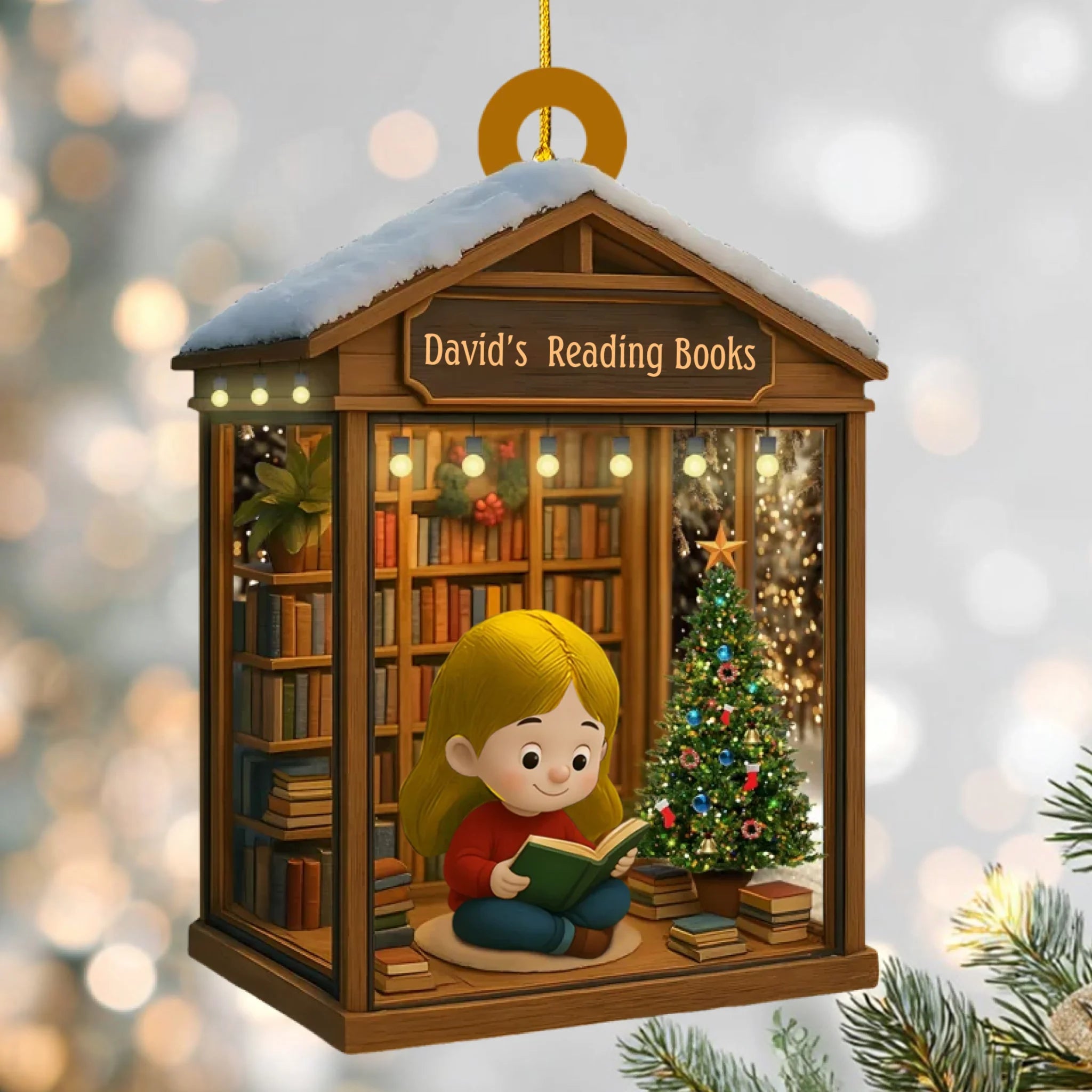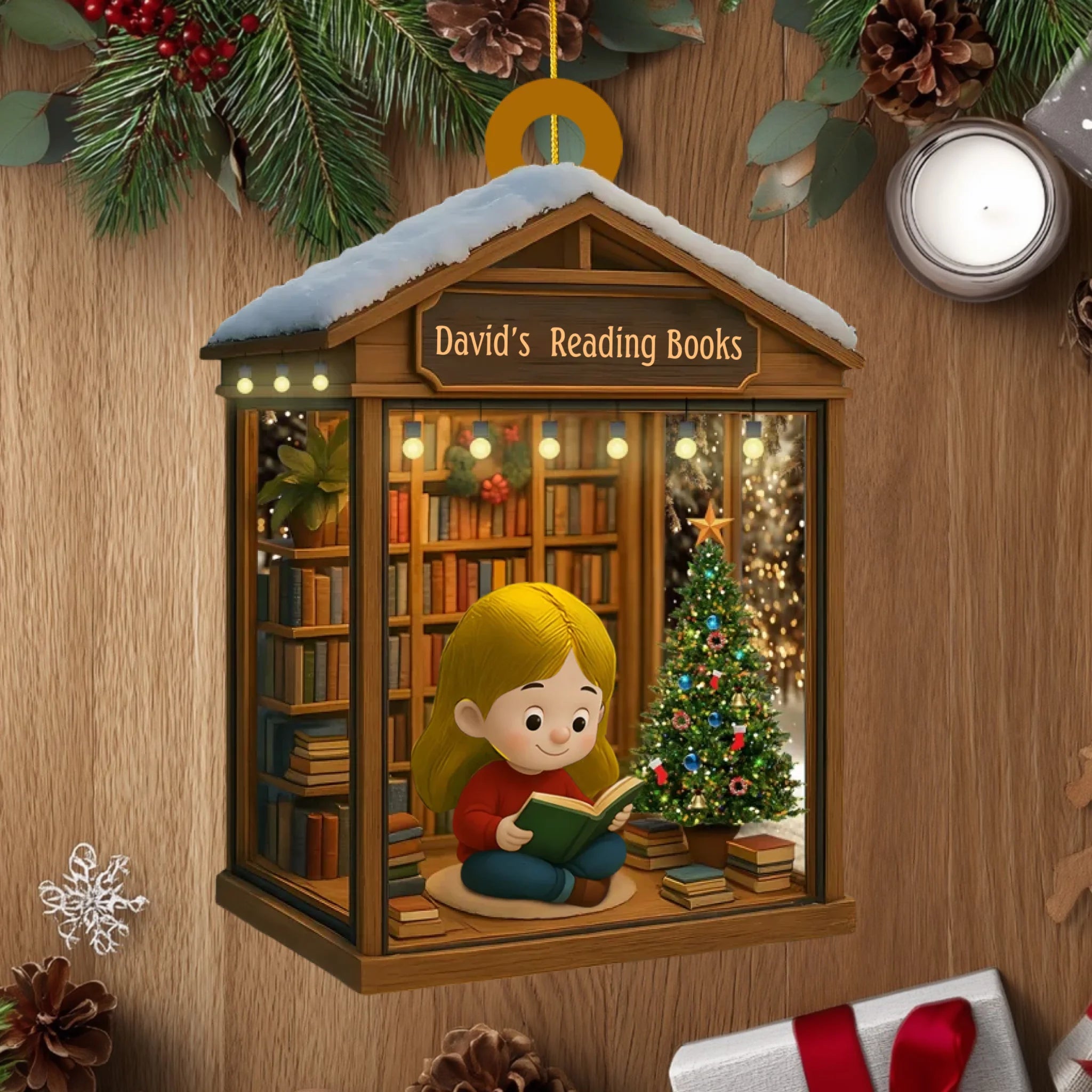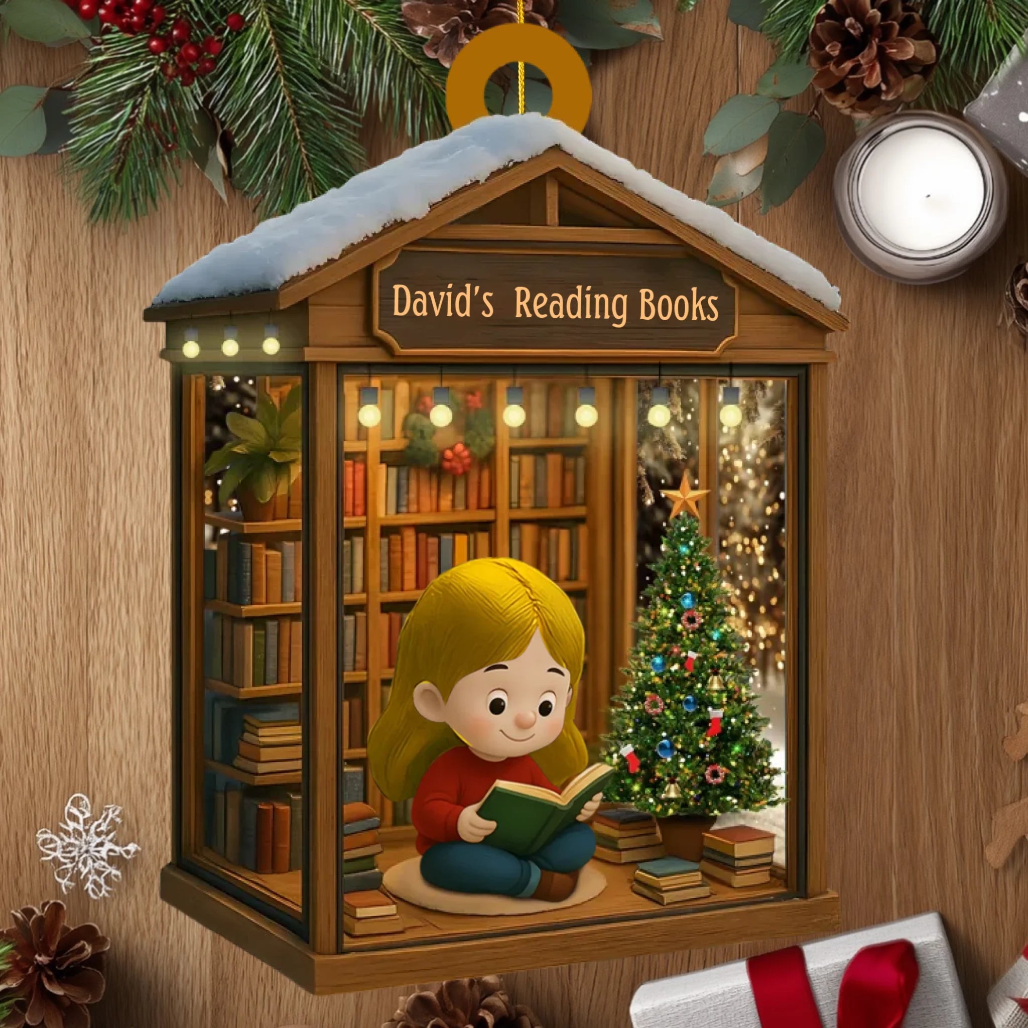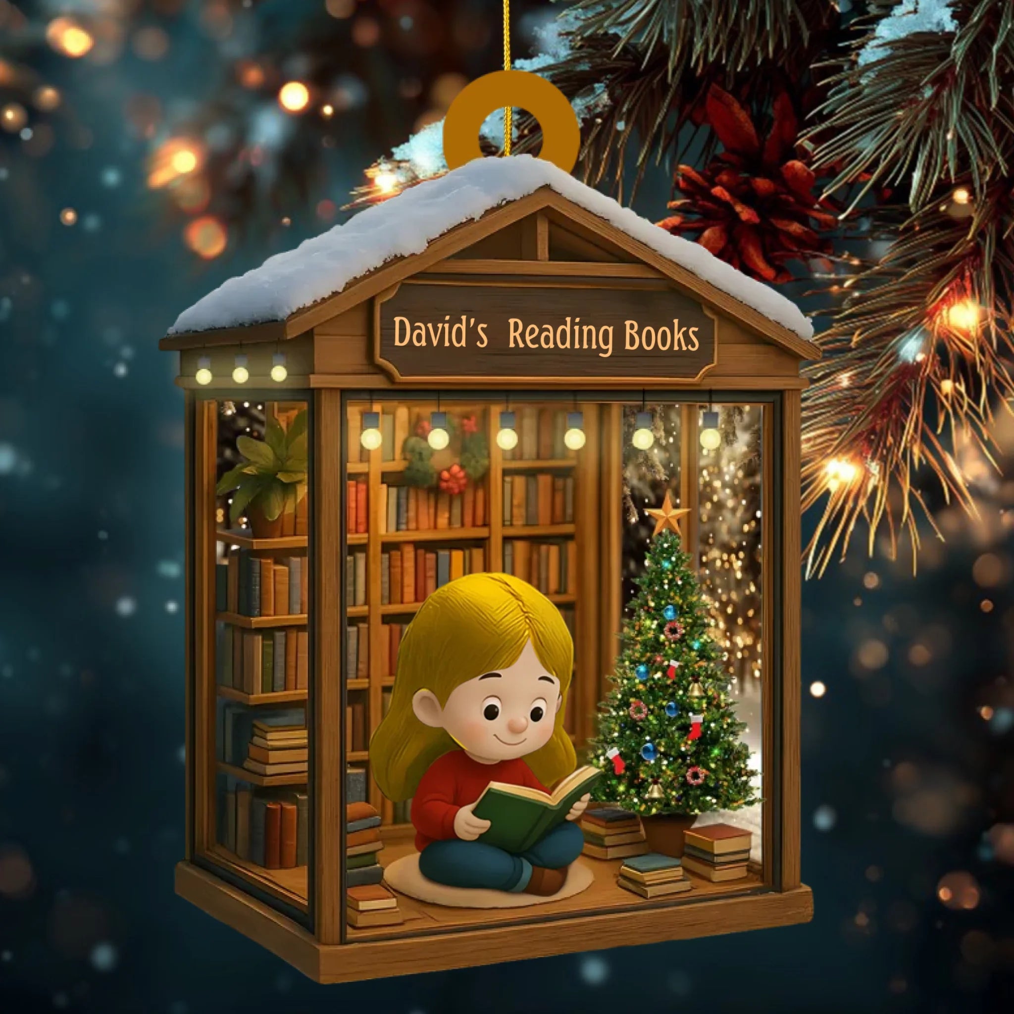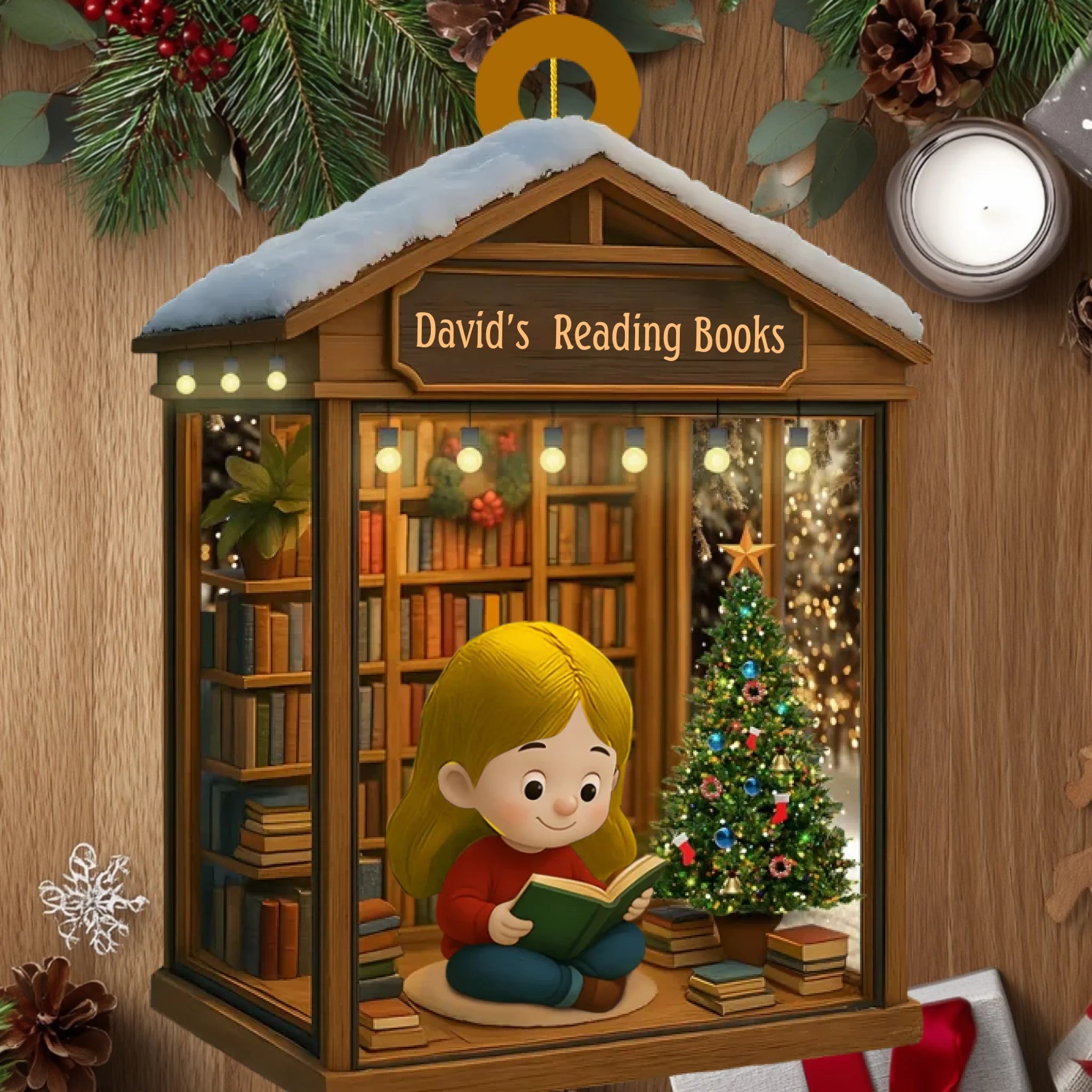 Personalized Reading Books Ornament – Custom Name & Character, Wooden Christmas Decoration