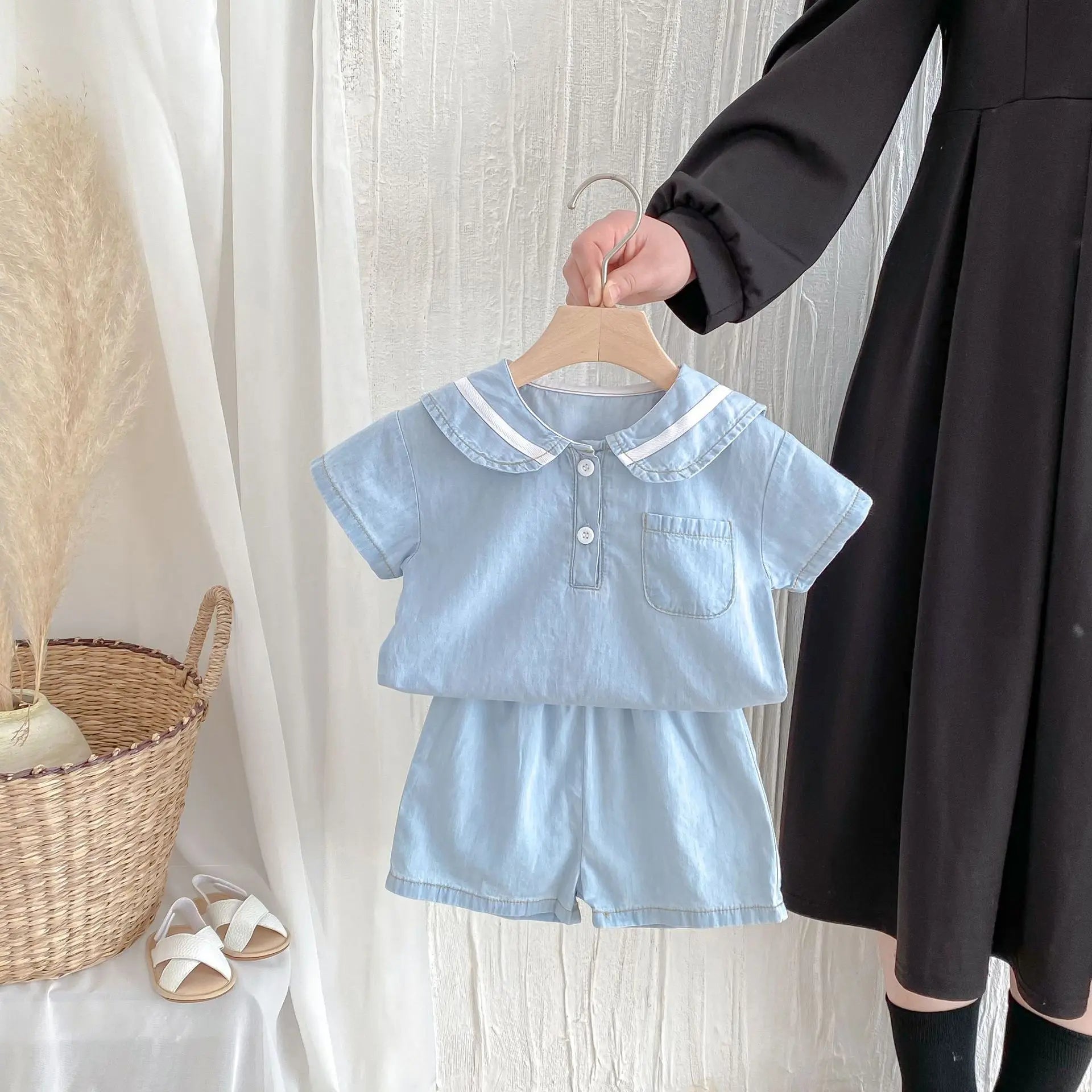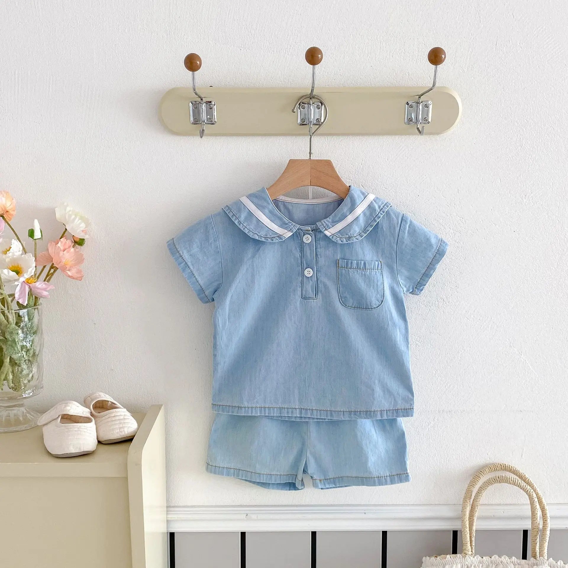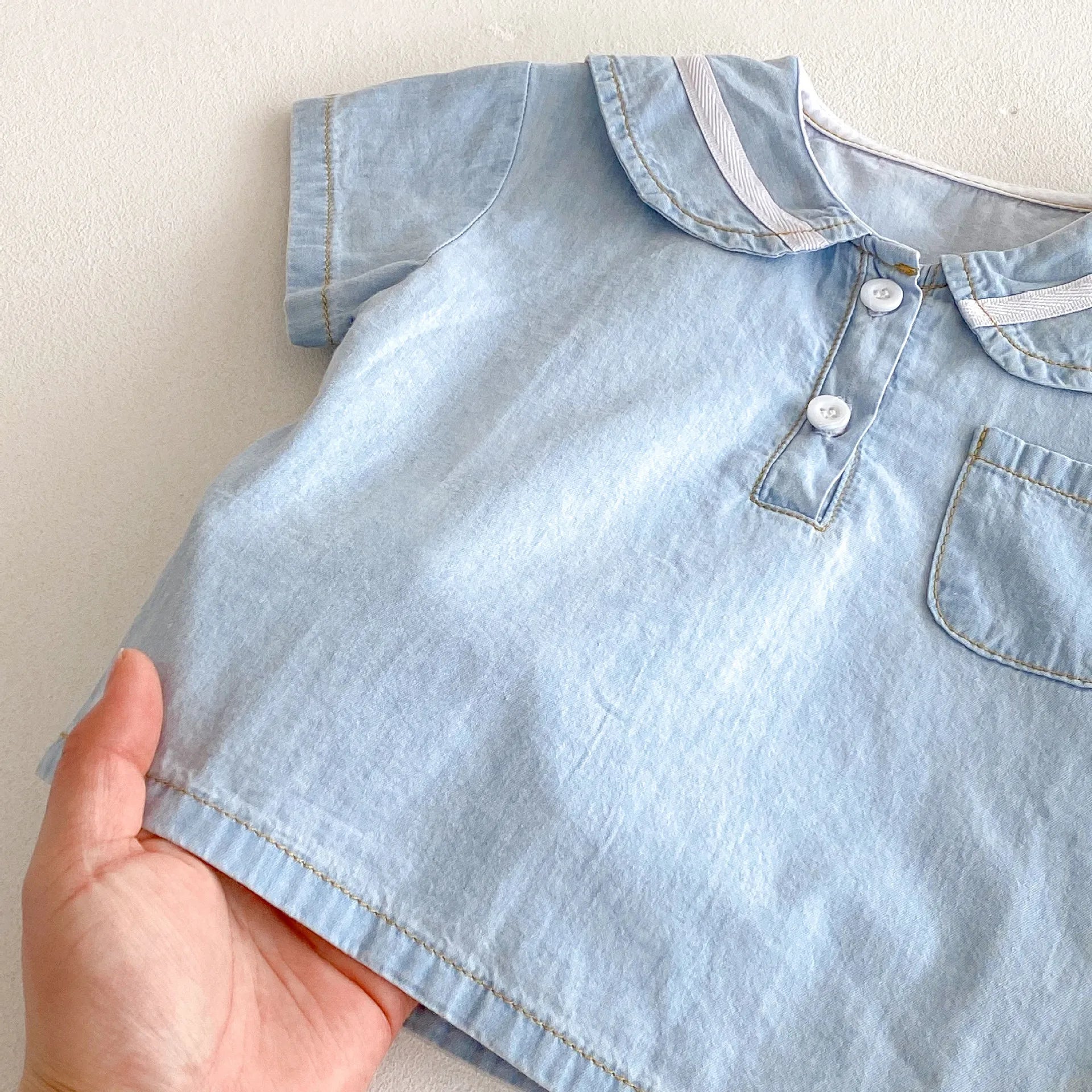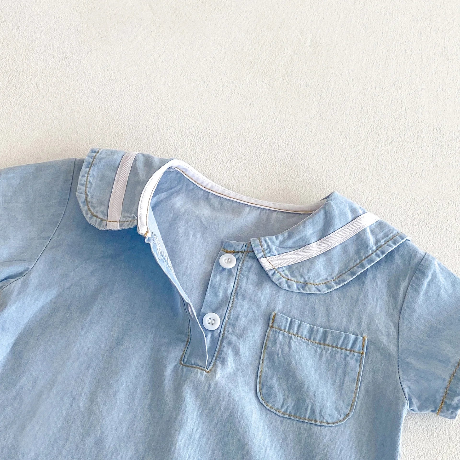 ¡Viste a tu pequeño con un estilo fresco y transpirable este verano! Este encantador conjunto de dos piezas de mezclilla incluye una camisa con cuello marinero y pantalones cortos a juego, perfectos para citas de juego, paseos o cualquier diversión bajo el sol. 🌞