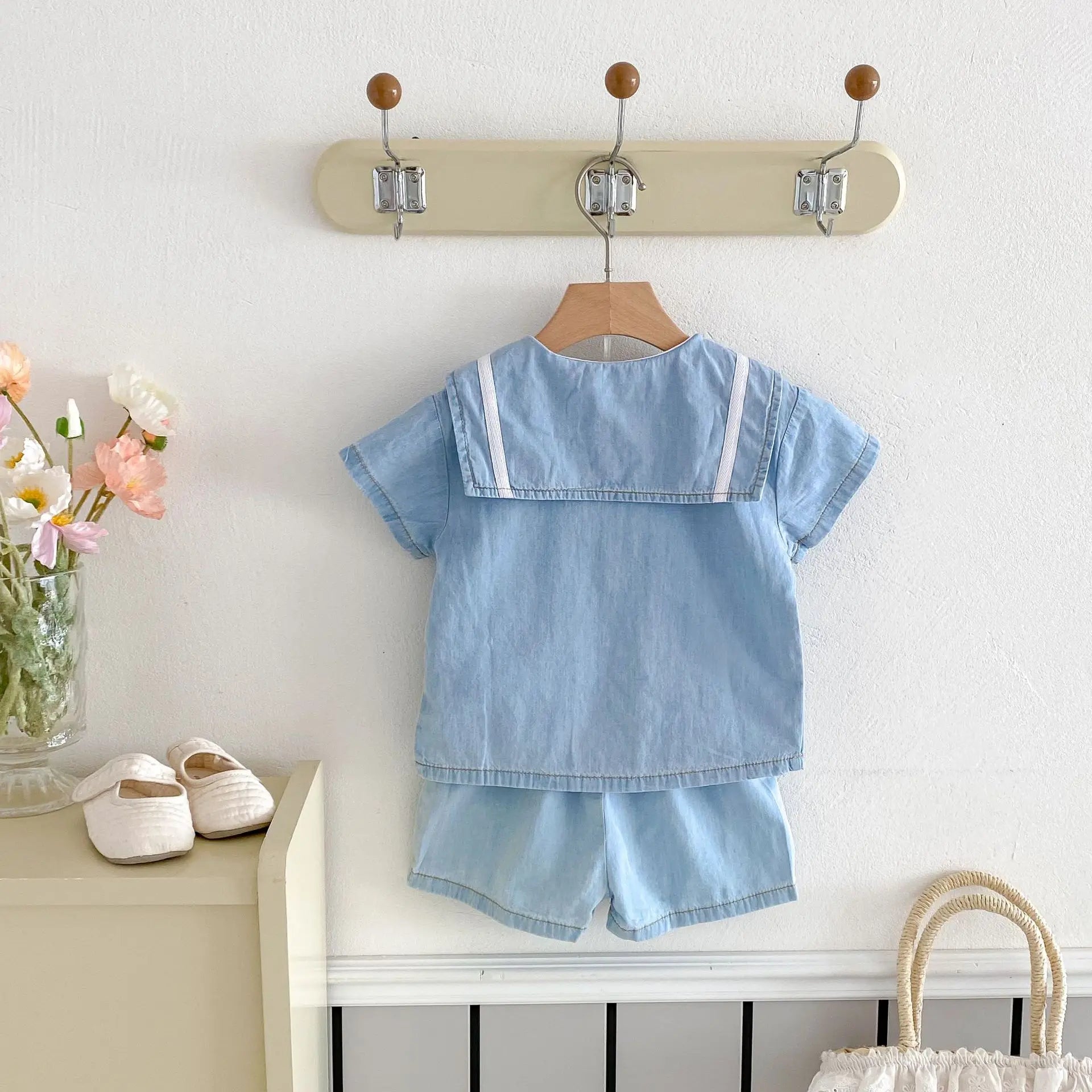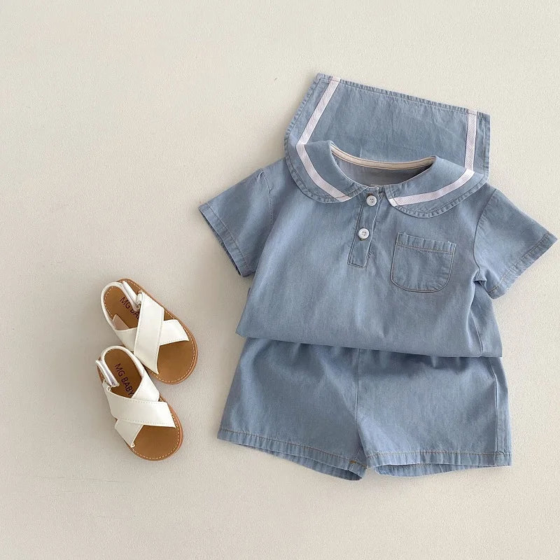 Camiseta de manga corta con cuello marinero + pantalones cortos para niños | Tallas: 0–6 años