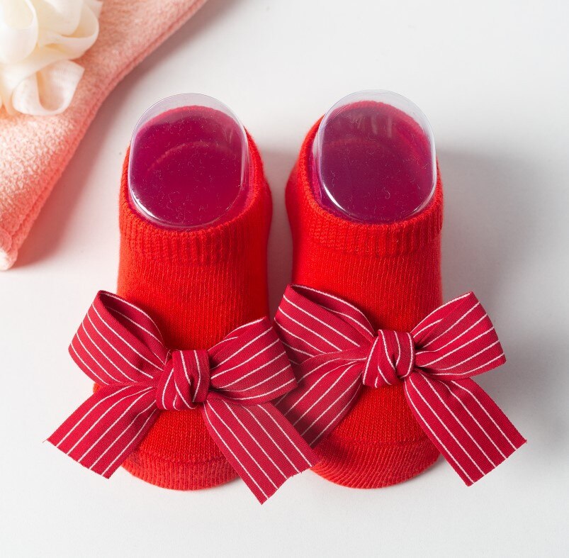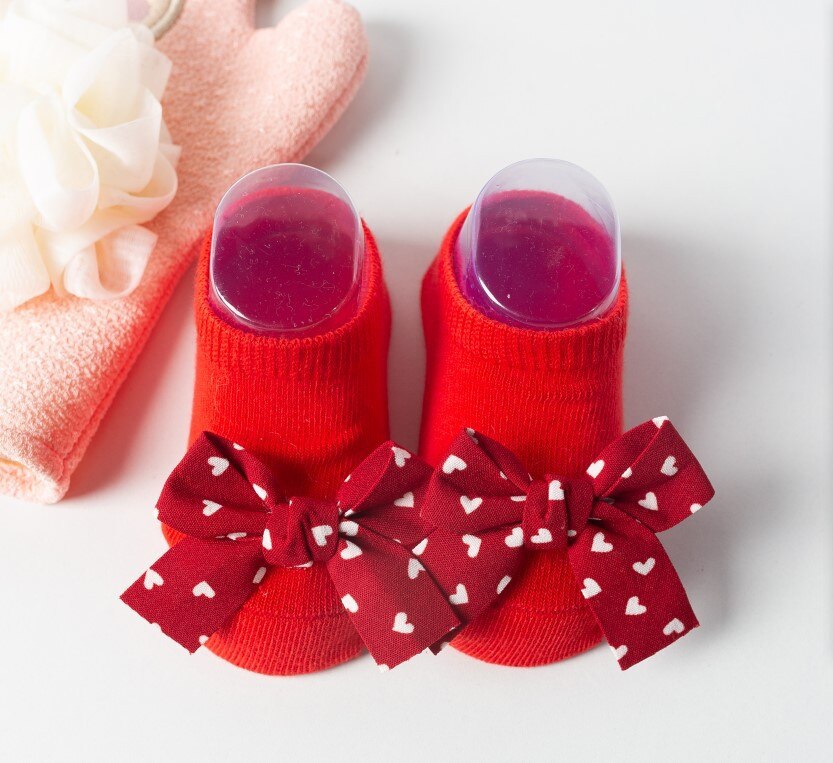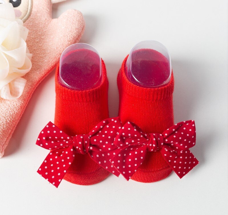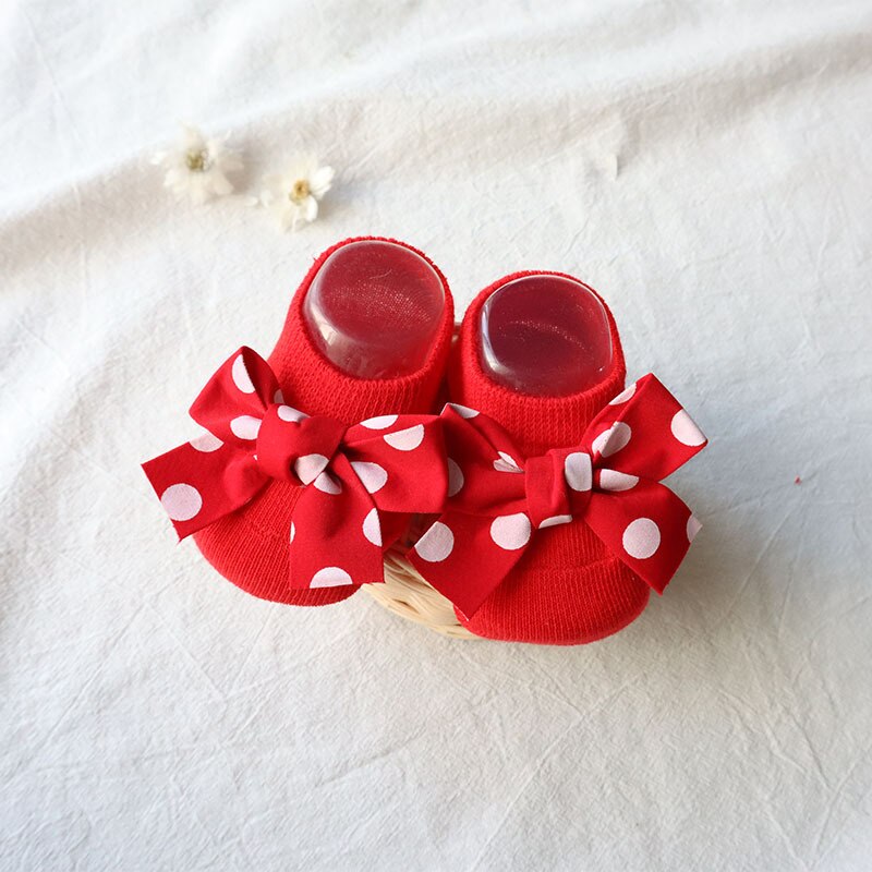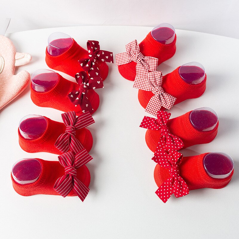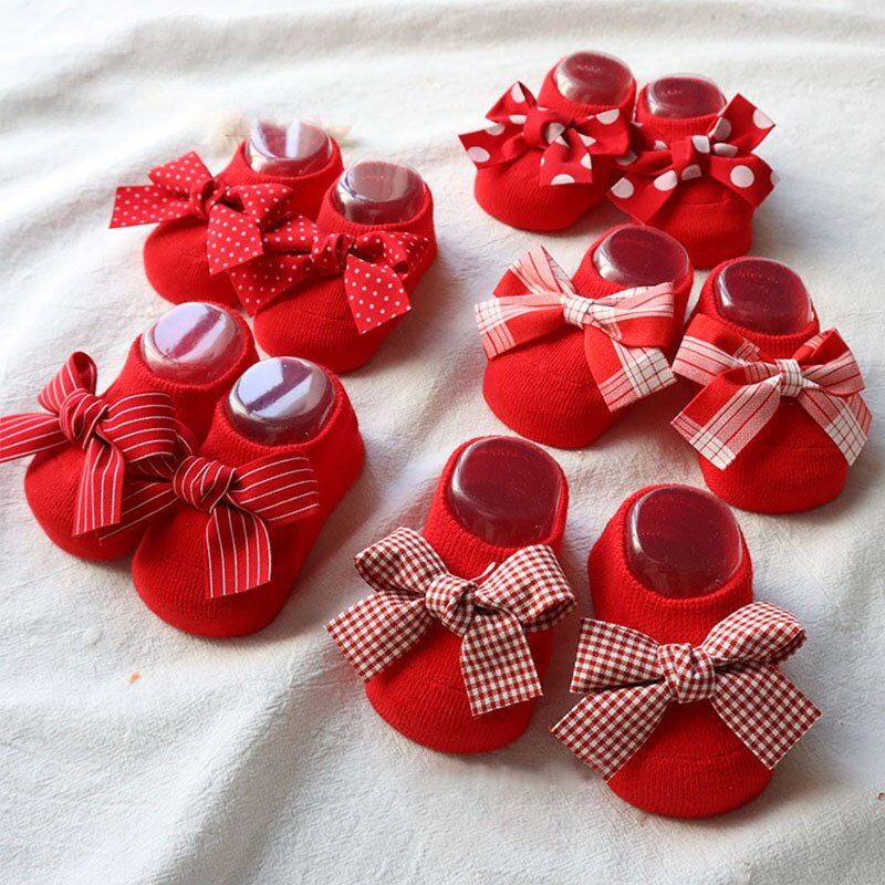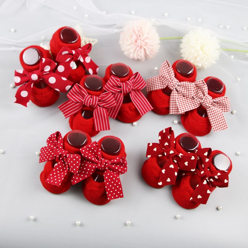 Los calcetines de princesa para bebés con lindos lazos facilitan a las mamás coordinar la ropa del bebé. Toma una foto, es muy bonita. Hay 2 colores, rojo y blanco, con bonitos lazos para que mamá elija.