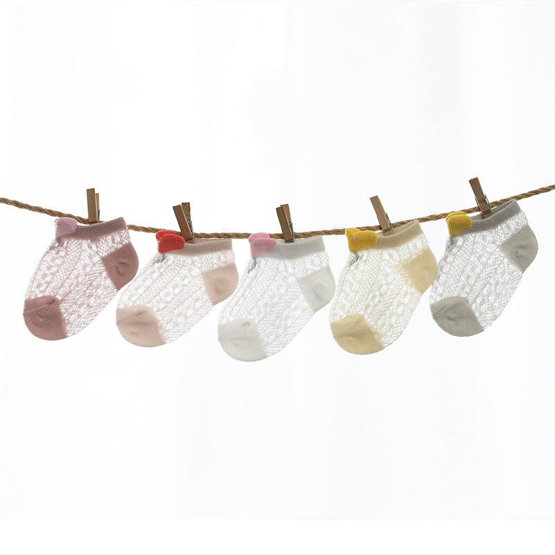 - Los calcetines de malla no hacen que el bebé se sienta caliente ni congestionado, pero se sienten muy cómodos.