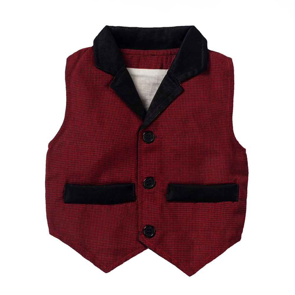 Long Sleeve Top Red Waistcoat and Suspender Pants Set