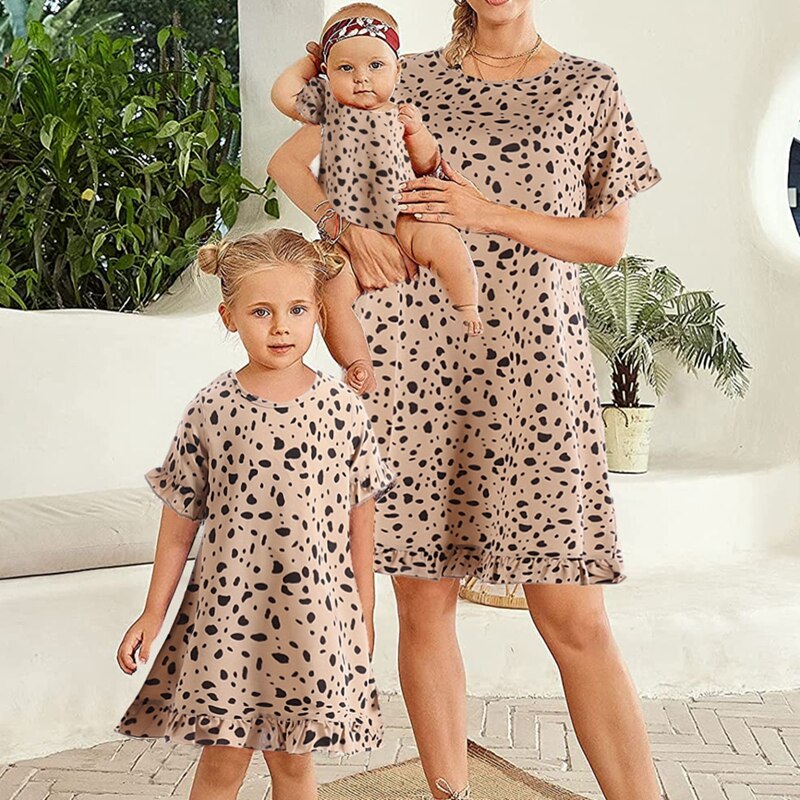 Vestido a juego para madre e hija con estampado de leopardo