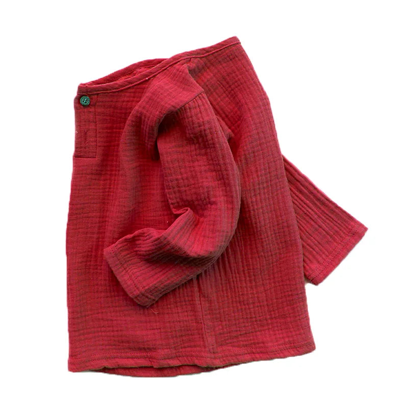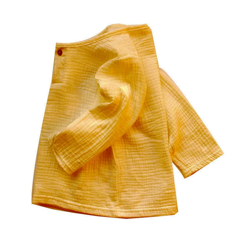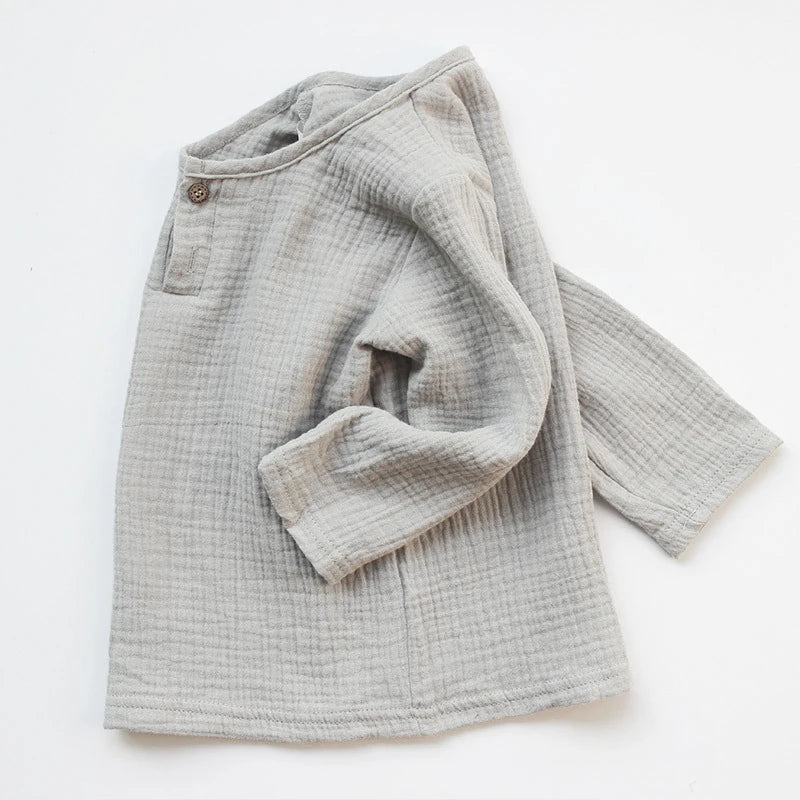 Mejora el guardarropa de tu hijo con nuestra camiseta de lino plisado, una opción vanguardista diseñada para niños y niñas con estilo. Esta prenda versátil está confeccionada con una mezcla de algodón y lino de alta calidad, lo que garantiza comodidad y transpirabilidad para su pequeño.