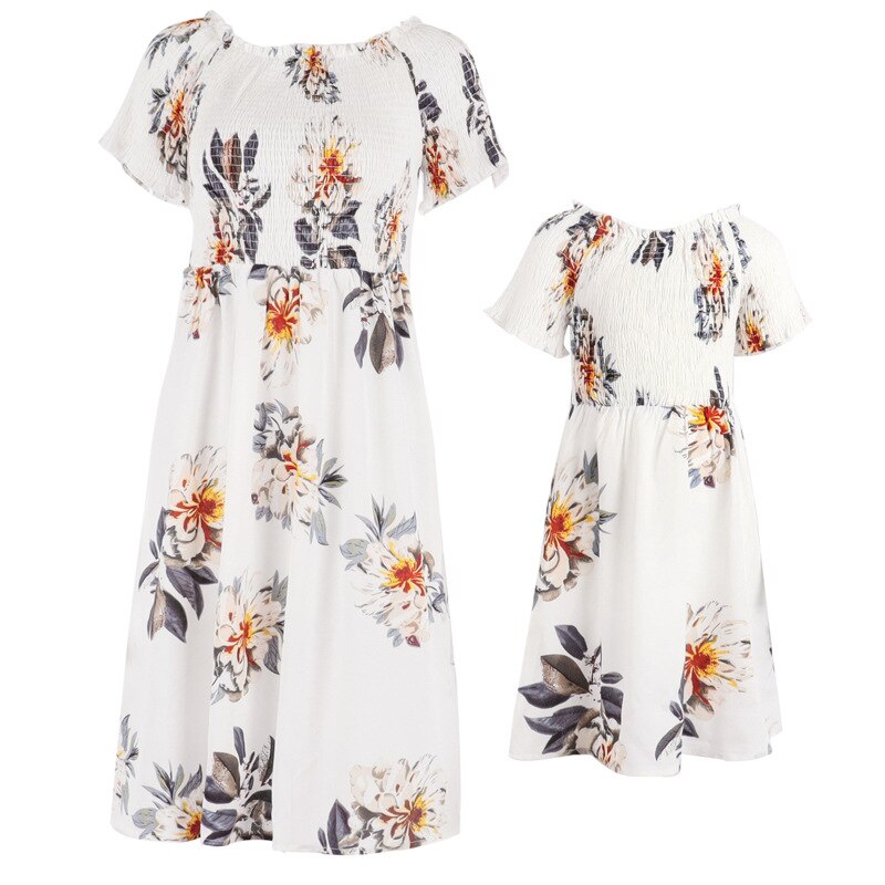 Set para mamá y bebé con precio súper atractivo para mamás aquí. Los vestidos con estampados florales y los diseños de moda crean acentos para madre e hija cuando los usan. El vestido de pareja madre y bebé es súper juvenil, lindo y sencillo para que cualquier mamá pueda usarlo.