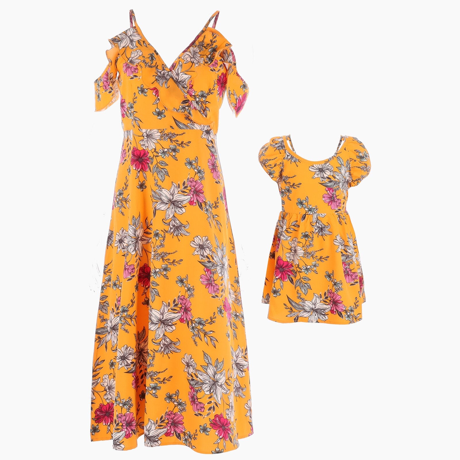 Conjunto de lindos vestidos florales familiares para mamá y bebé