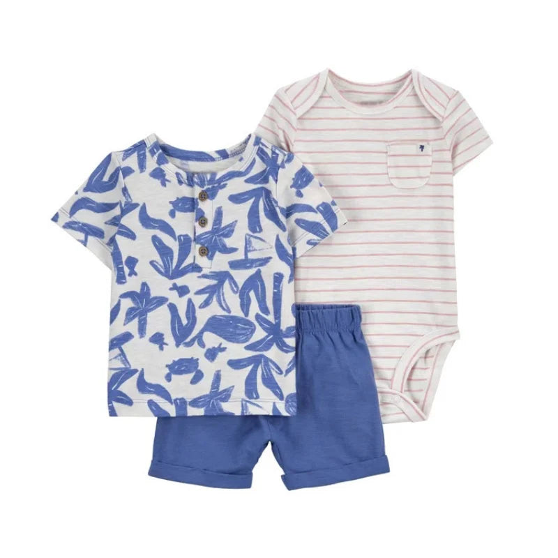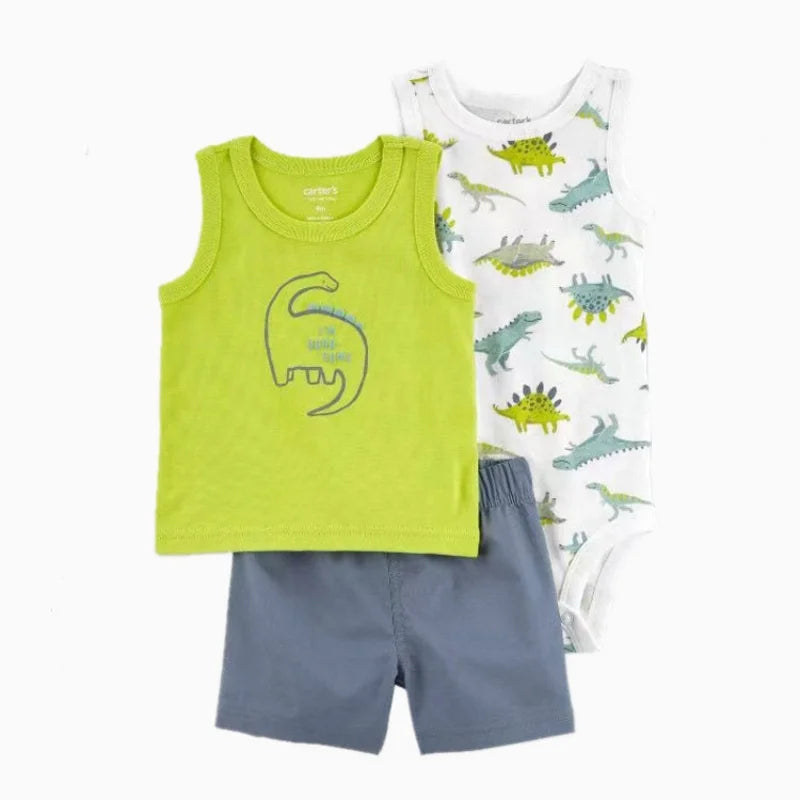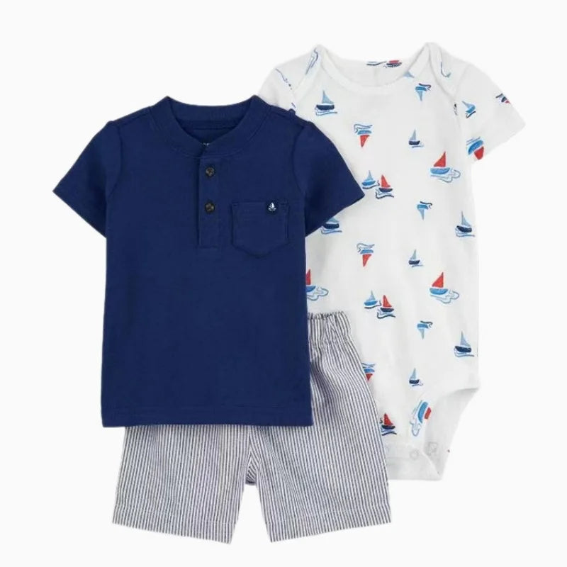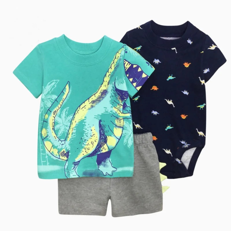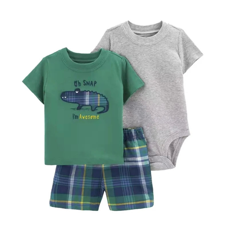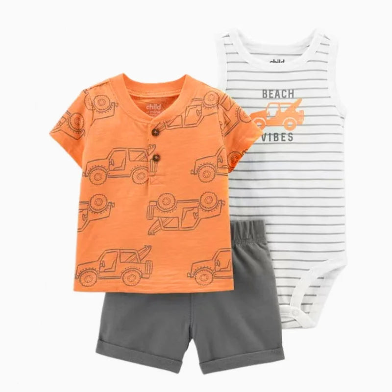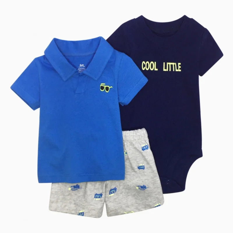 Set de verano para bebés recién nacidos varones | 3 piezas de ropa de algodón - camiseta de manga corta + pantalones cortos + body (6-24 meses)