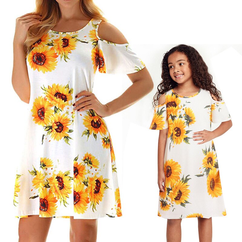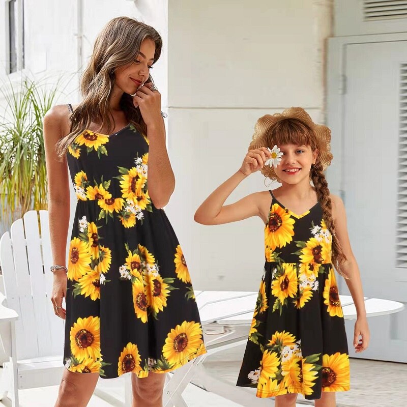 Vestido de mujer suelto casual con estampado de girasol para madre e hija