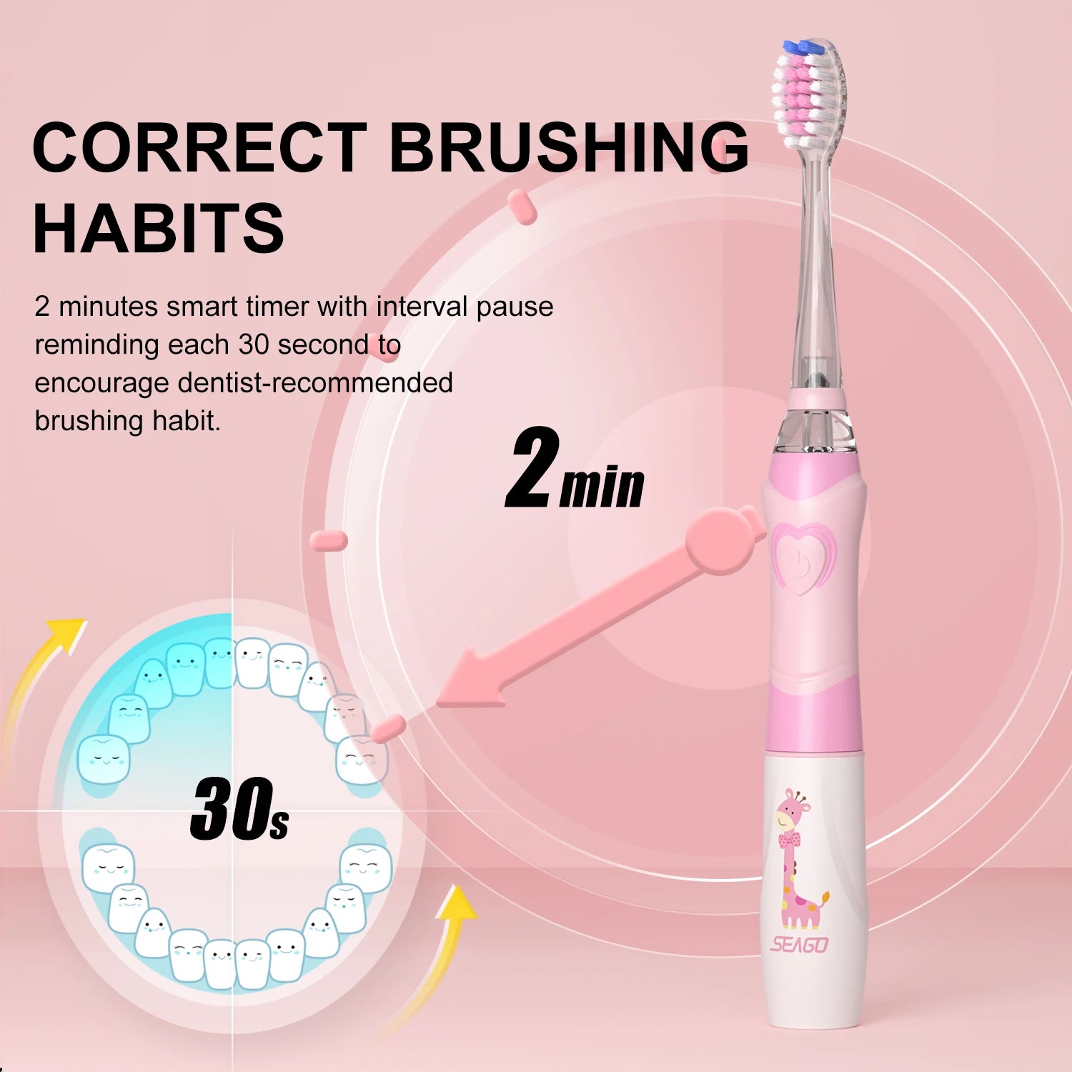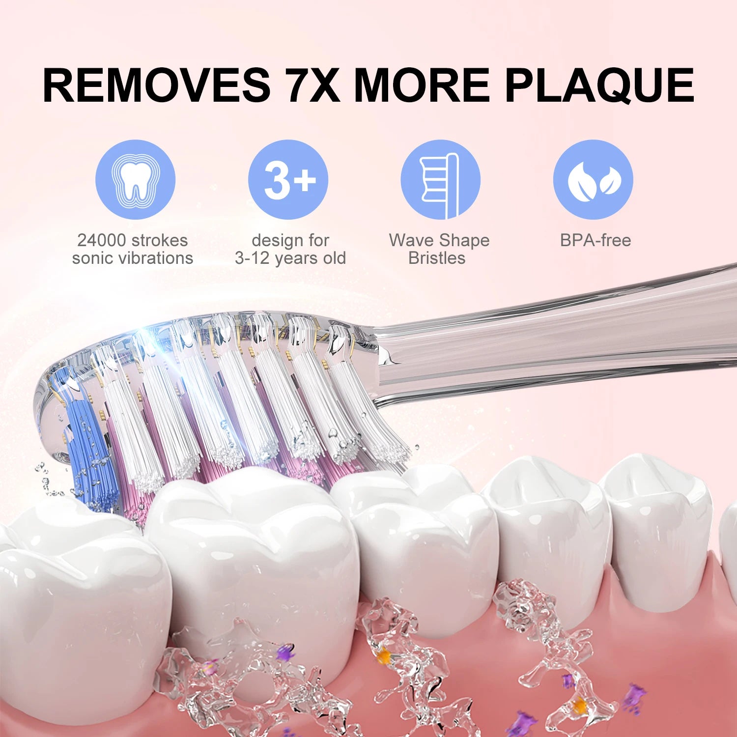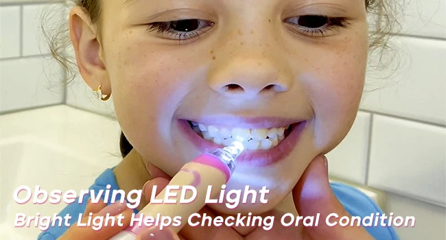 Luz LED para una observación clara : nuestro cepillo de dientes cuenta con una suave luz LED que le permite identificar los problemas de salud dental de su hijo en tiempo real. Una observación clara garantiza una intervención oportuna y la prevención de problemas dentales.