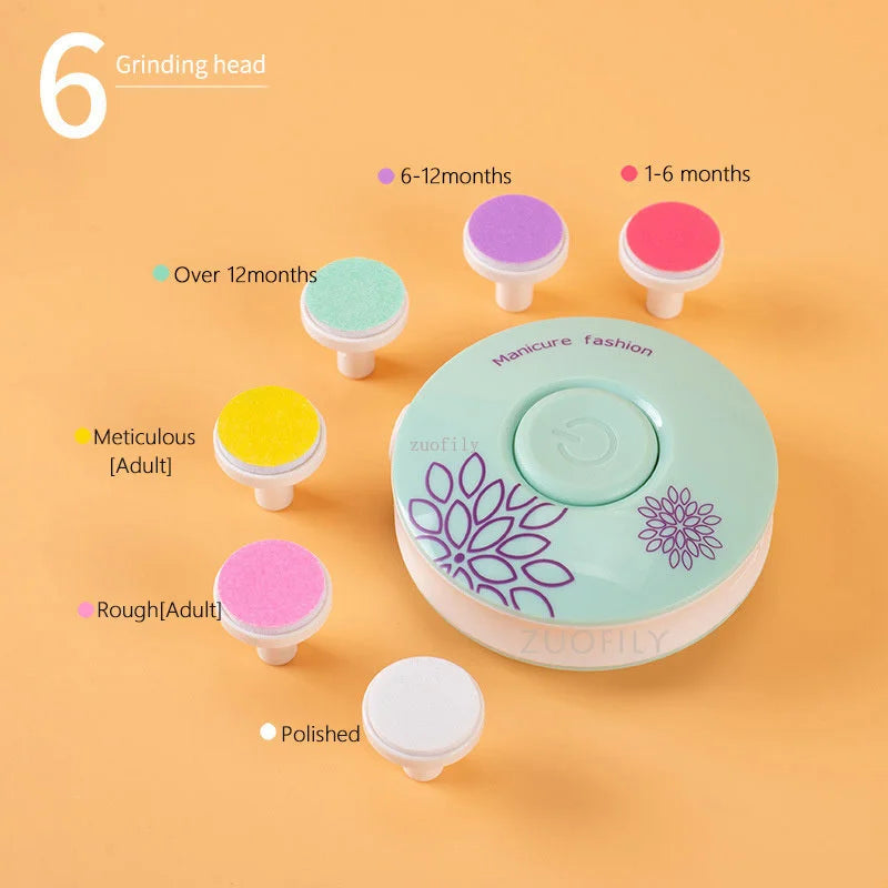 Diseño portátil y de fácil limpieza: Compacto y ligero, es fácil de sostener y operar. Las cabezas de pulido son desmontables para facilitar la limpieza y esterilización, asegurando un cuidado higiénico continuo de las uñas de tu bebé.