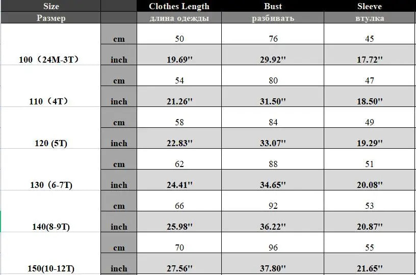 - Tabla de tallas: (1 cm = 0,3937 pulgadas)