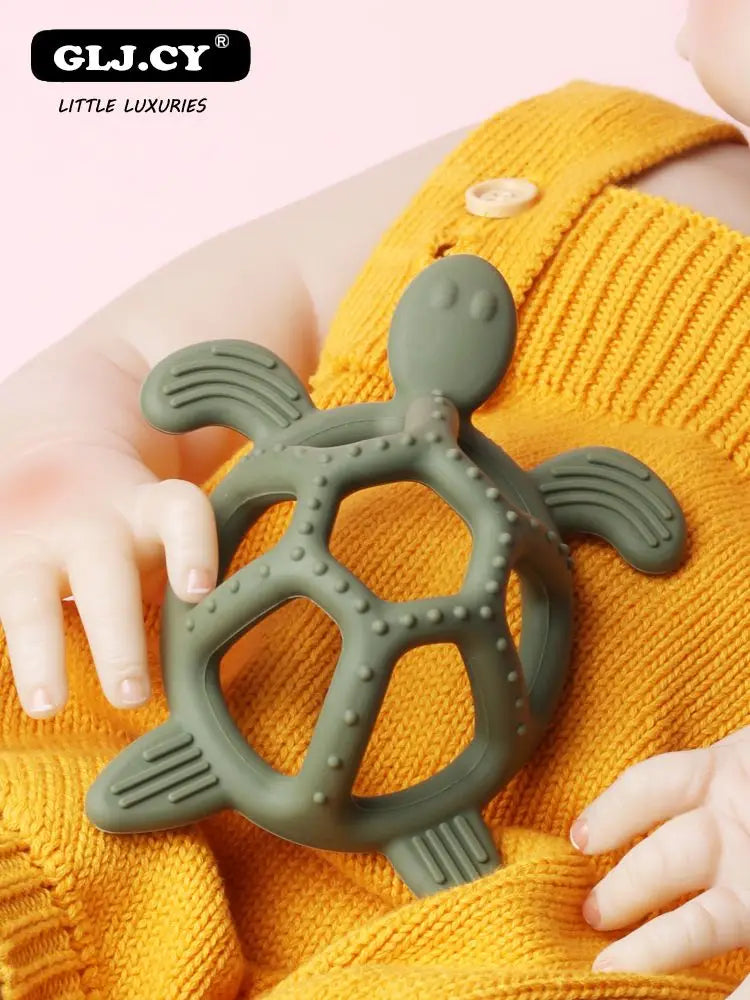 Presentamos los juguetes molares de silicona: mordedor para bebés con forma de tortuga para un cuidado bucal suave