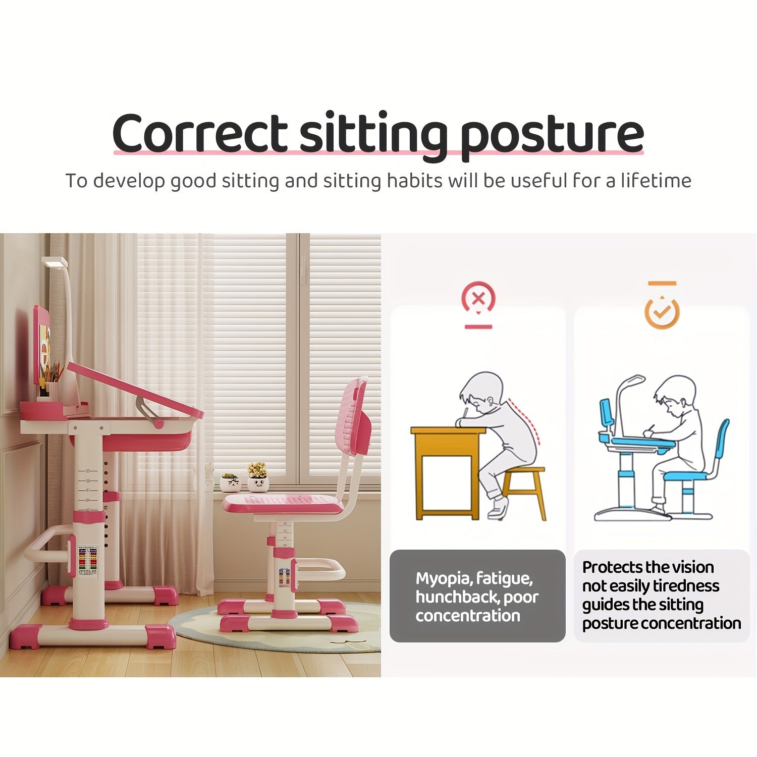 Conjunto de Escritorio y Silla para Niños – Mesa de Estudio para Guardería, Escritorio de Escritura, Diseño Ergonómico para Niños y Preescolares