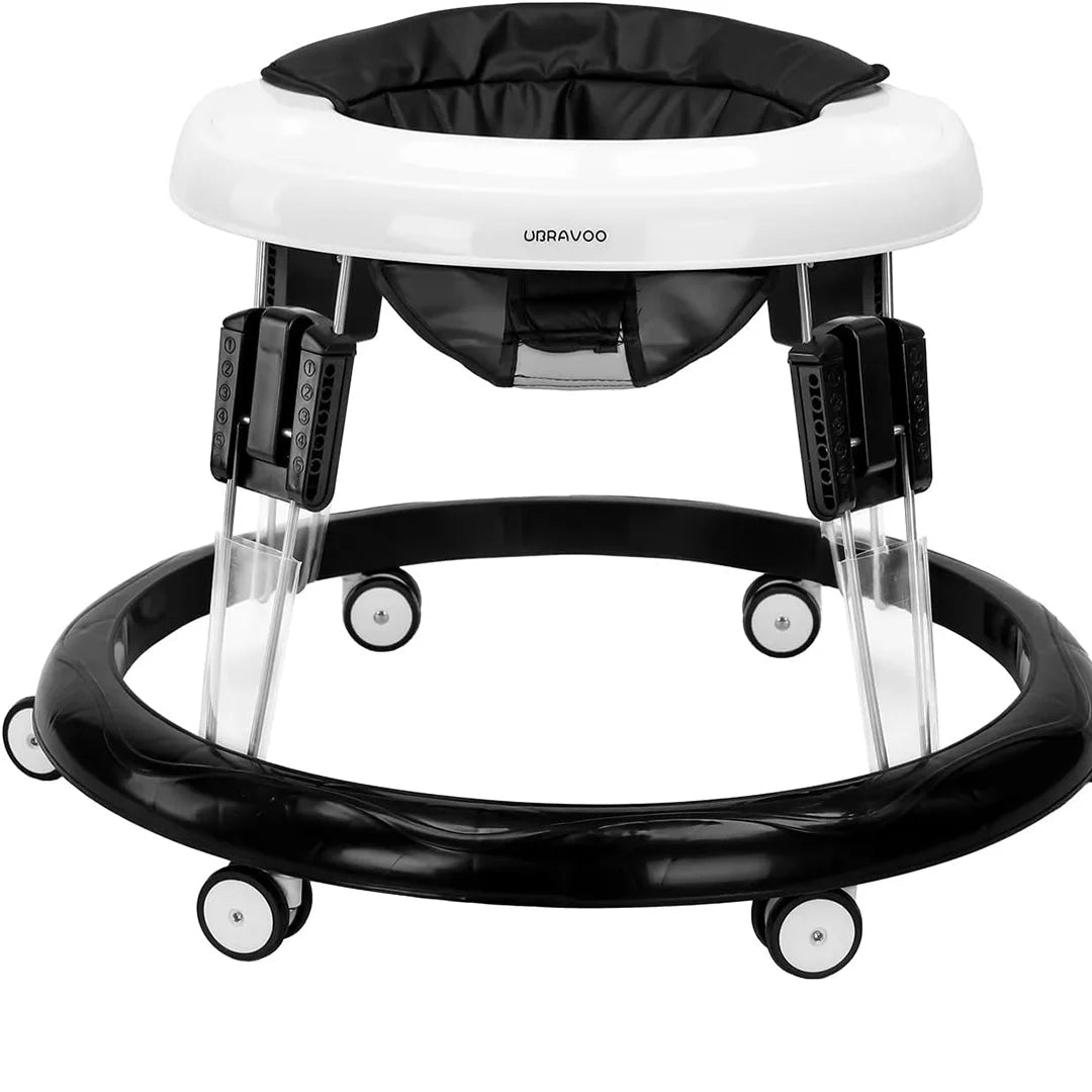 Andador redondo ajustable para bebés con ruedas universales, 9 alturas ajustables, plegable y compacto, para niños de 6 a 18 meses
