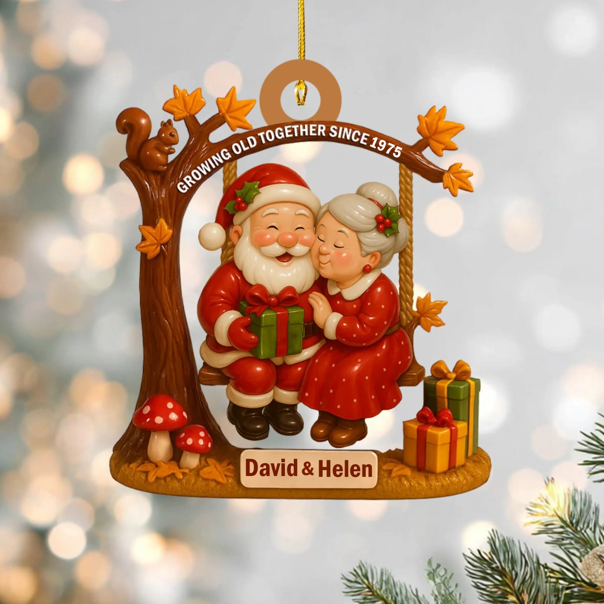 Personalized Santa Couple Wooden Ornament – Custom Names & Year, Christmas Gift Keepsake