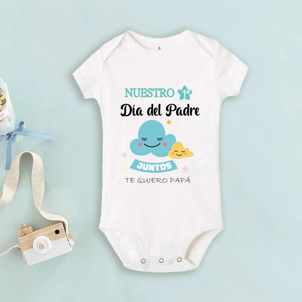 Nuestro primer día del padre: conjunto a juego para papá y bebé está diseñado para celebrar el vínculo entre padre e hijo. El conjunto incluye un pelele para bebé y una camiseta a juego para papá, ambos confeccionados en poliéster suave y transpirable. Las mangas cortas y el material liviano hacen que estos conjuntos sean perfectos para actividades de verano y sesiones de fotos. Este conjunto unisex garantiza que tanto el papá como el bebé luzcan adorables y al mismo tiempo se mantengan cómodos.