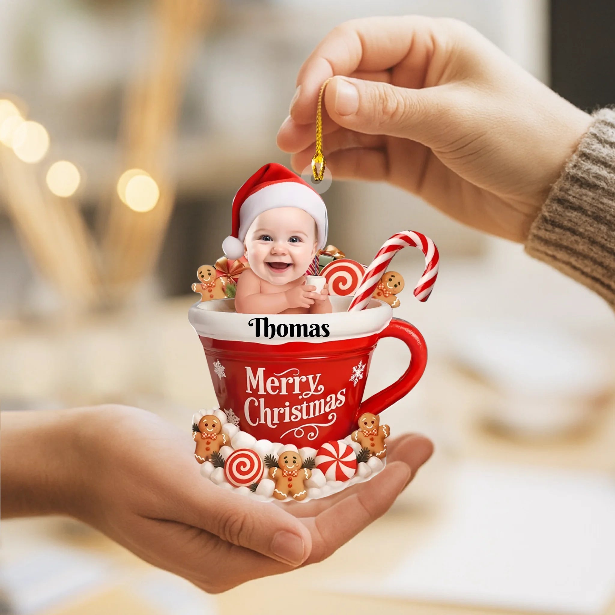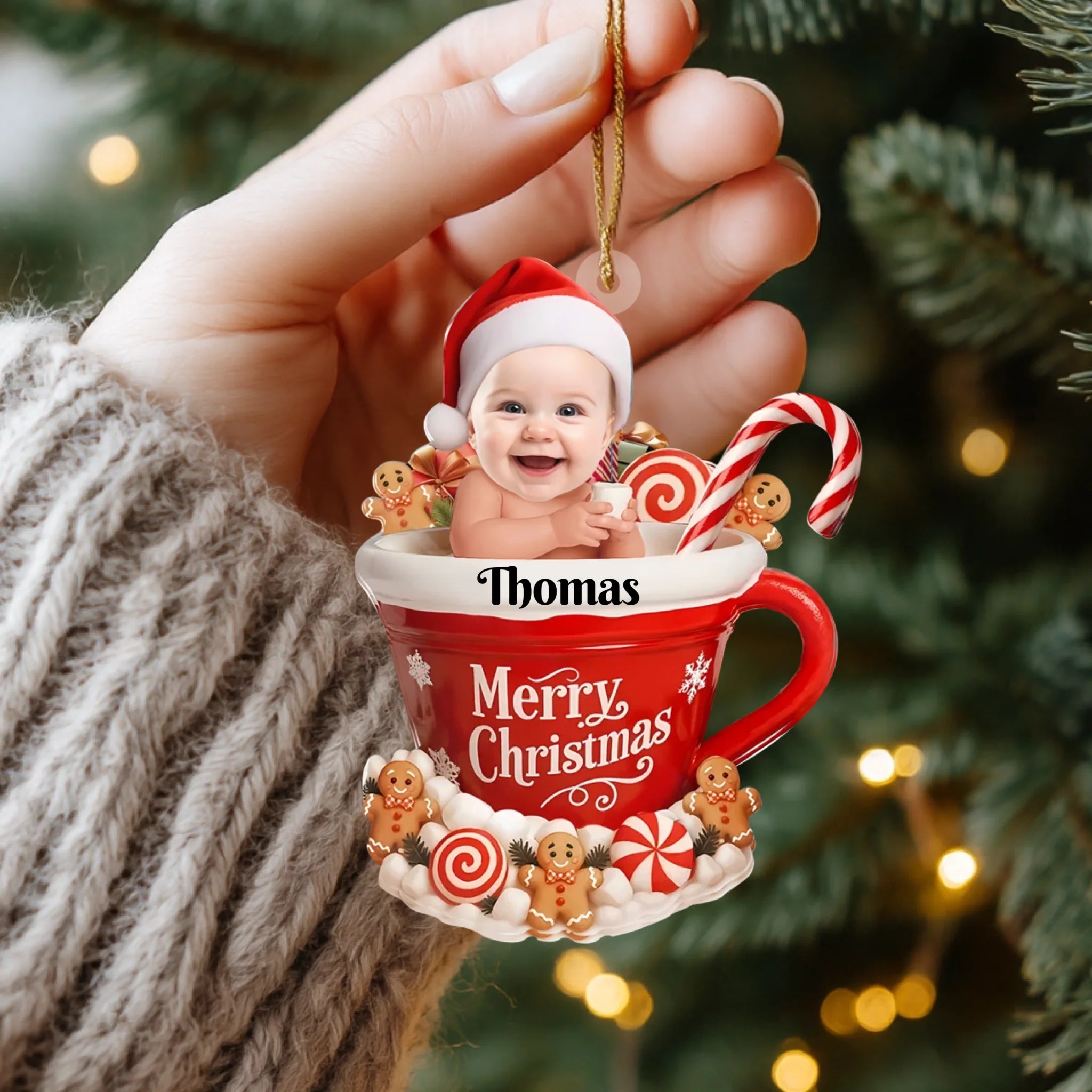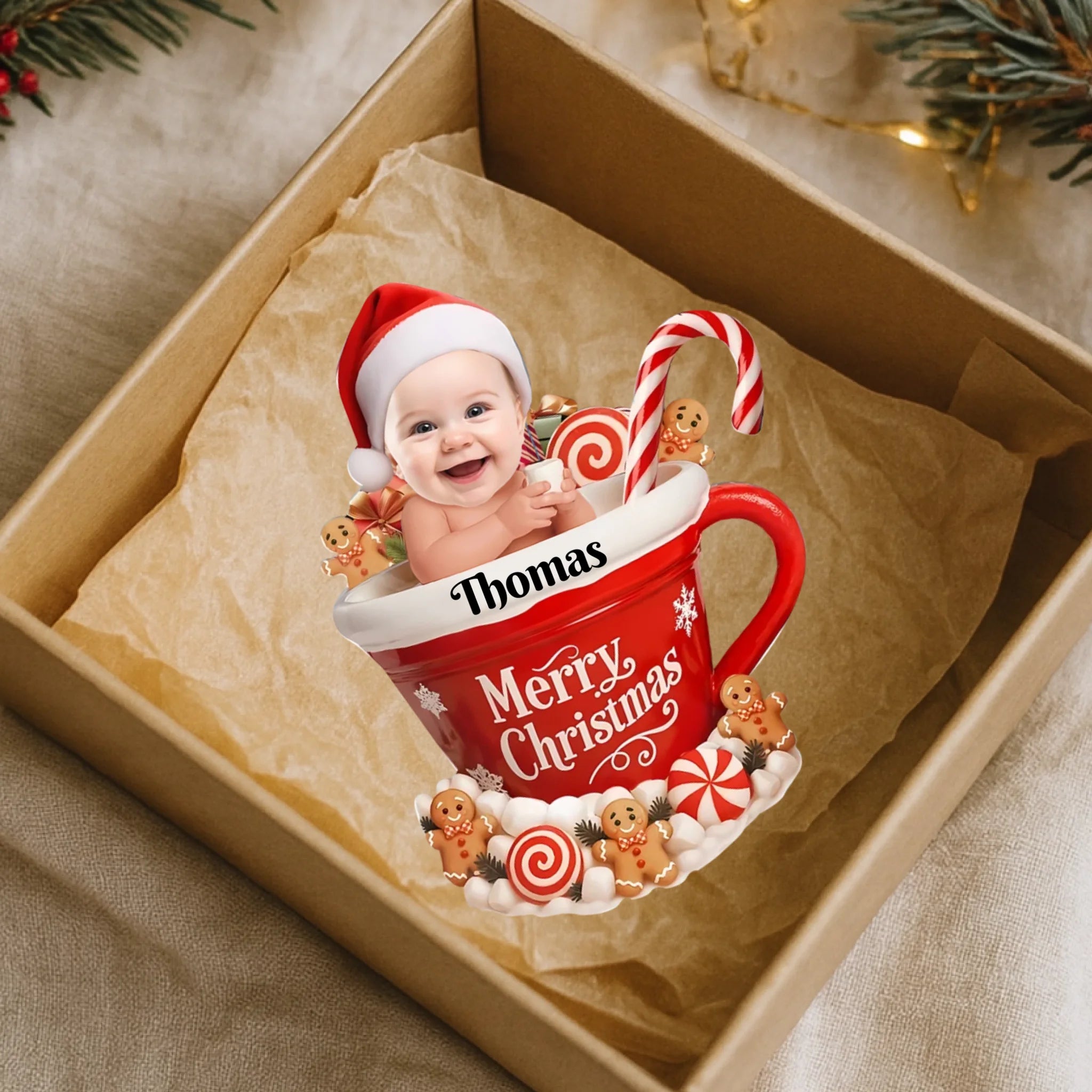 Adorno de Acrílico Personalizado con Foto de Bebé “Feliz Navidad” – Nombre, Rostro y Tono de Piel Personalizados