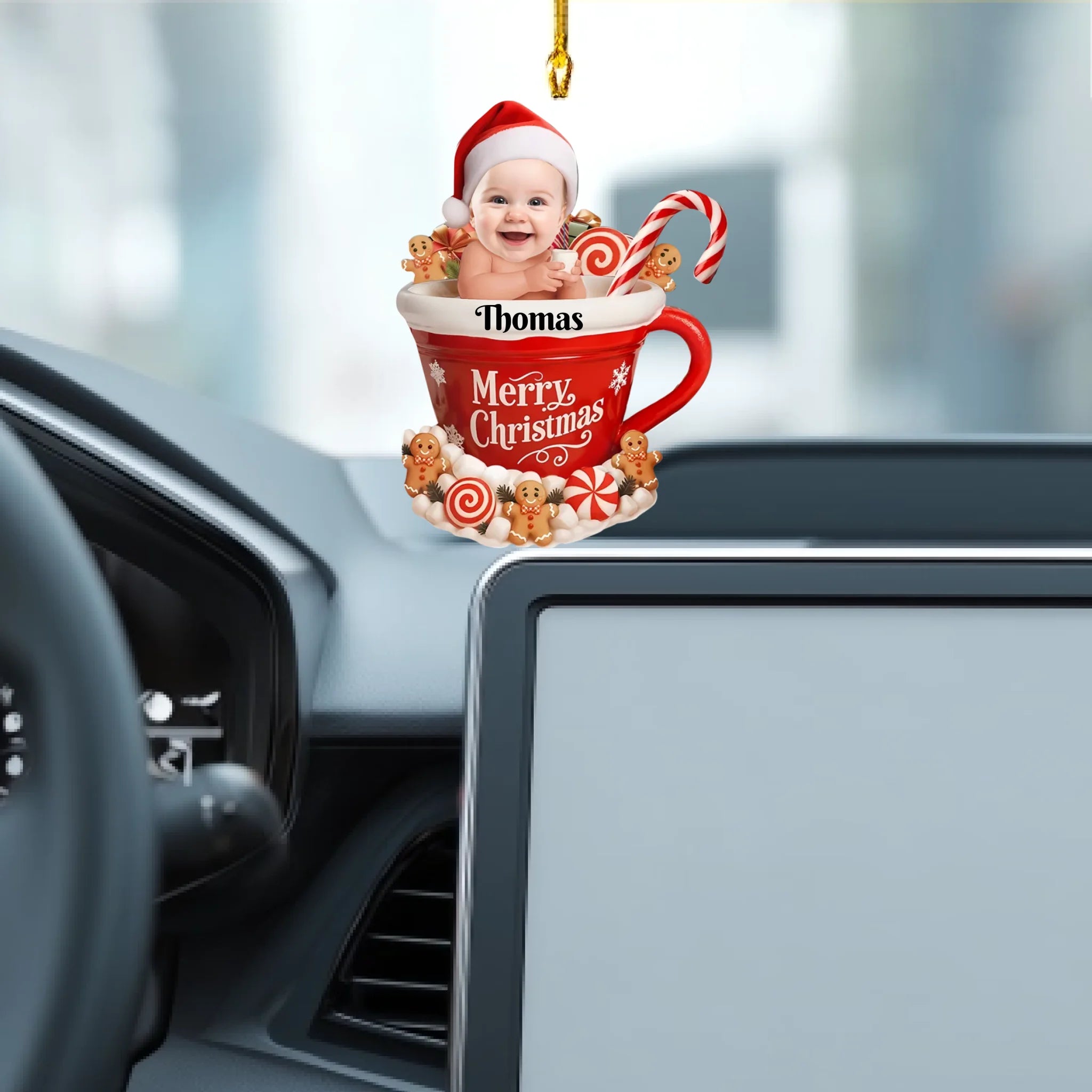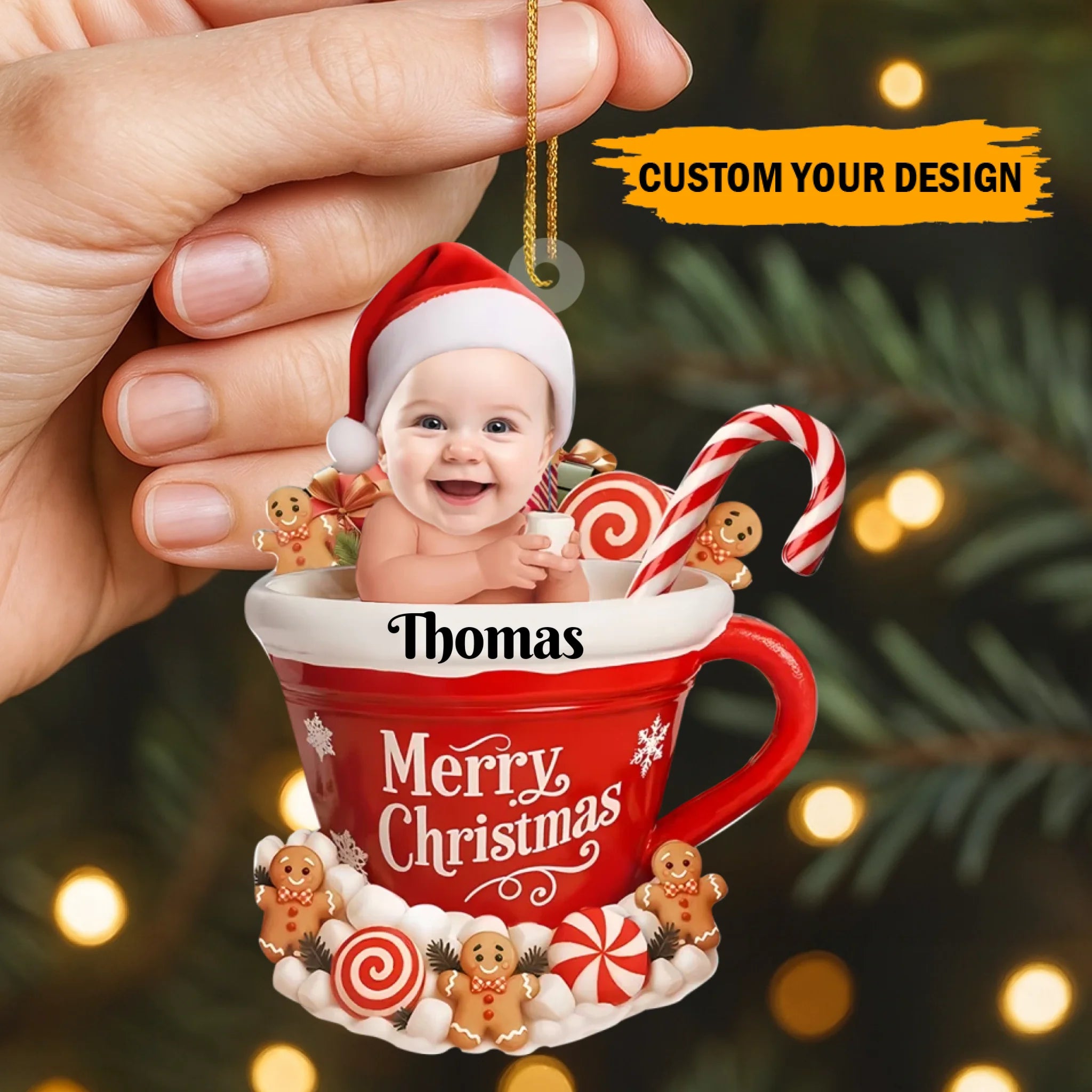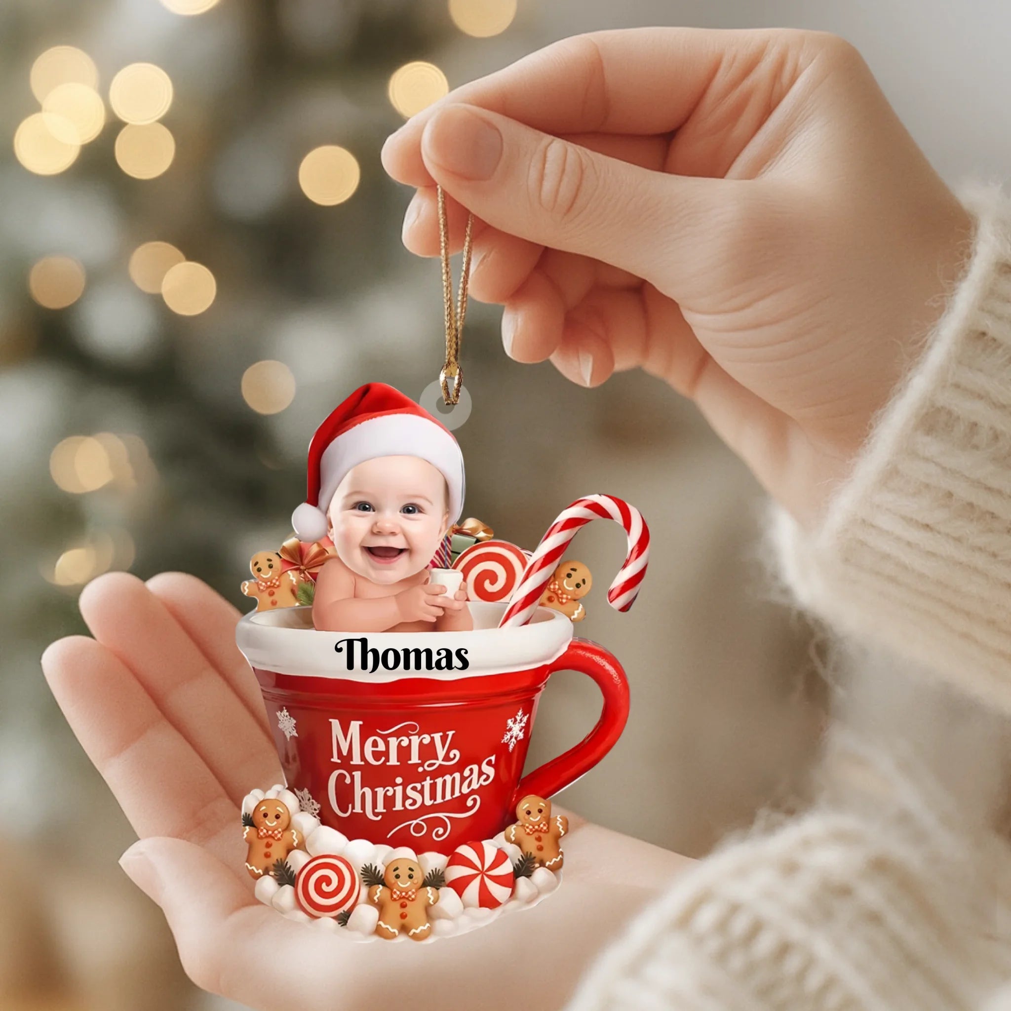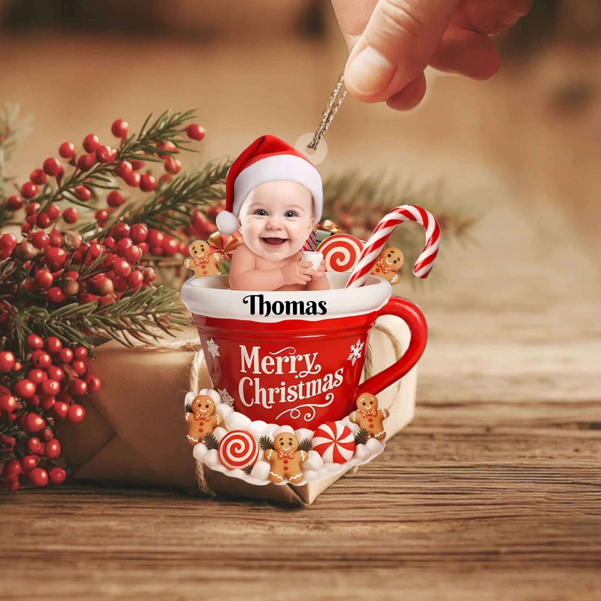 Adorno de Acrílico Personalizado con Foto de Bebé “Feliz Navidad” – Nombre, Rostro y Tono de Piel Personalizados