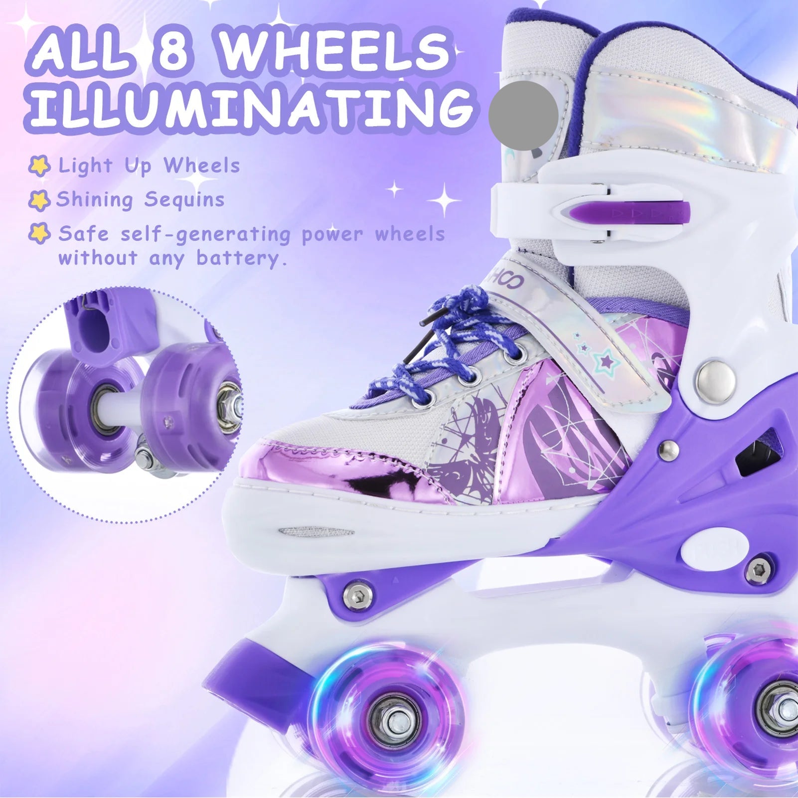 Patines Ajustables para Niños con Ruedas Iluminadas – 4 Configuraciones de Tamaño para Niñas y Niños – Patines LED Intermitentes para Diversión Interior y Exterior