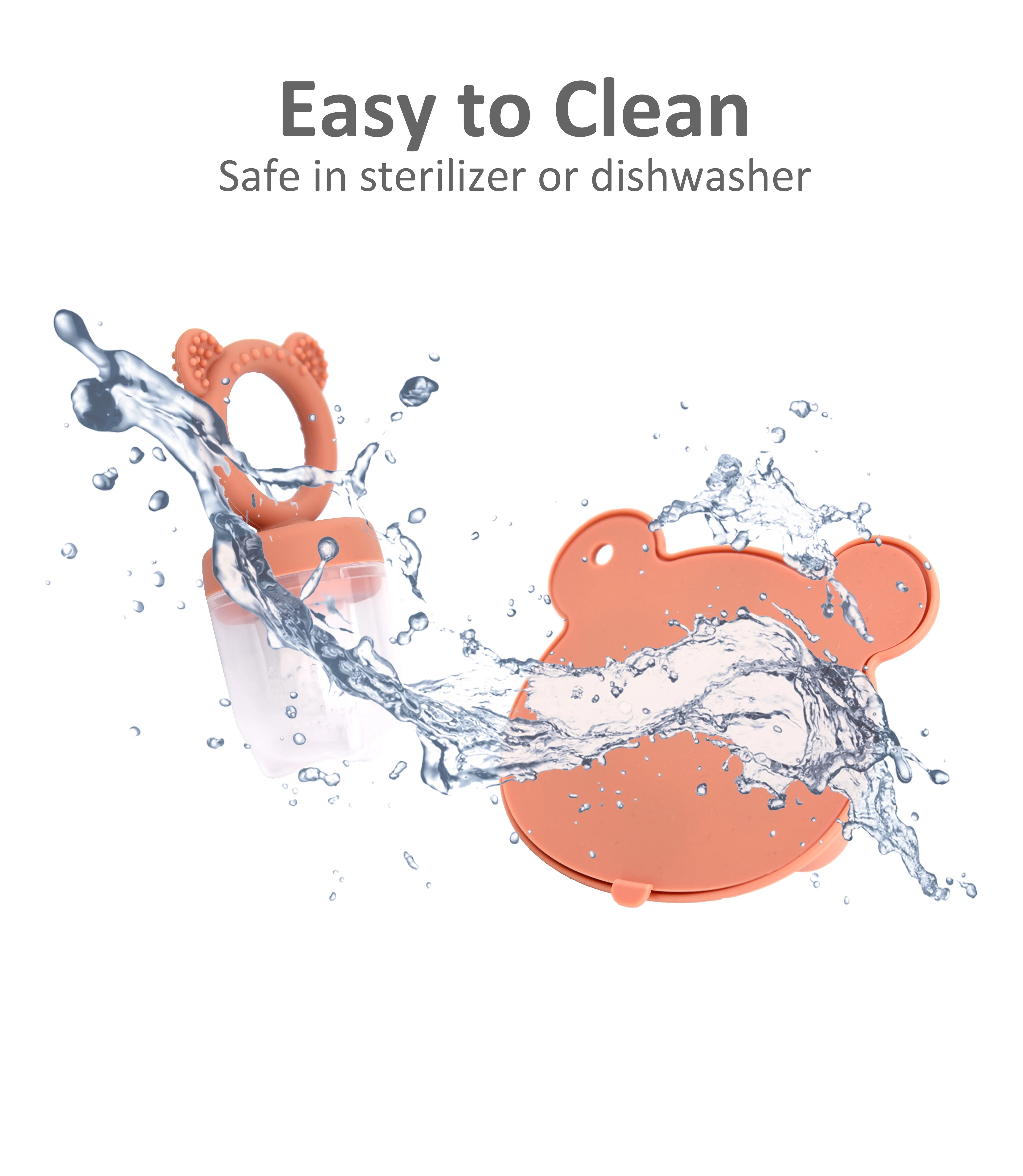 Seguro y confiable: Hecho de silicona, nuestro comedero y bandeja para congelador no contienen químicos dañinos, lo que garantiza la seguridad de su bebé durante la hora de comer.