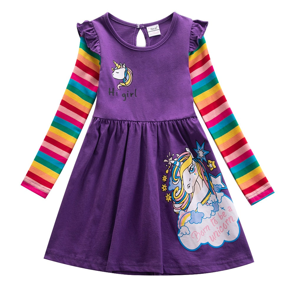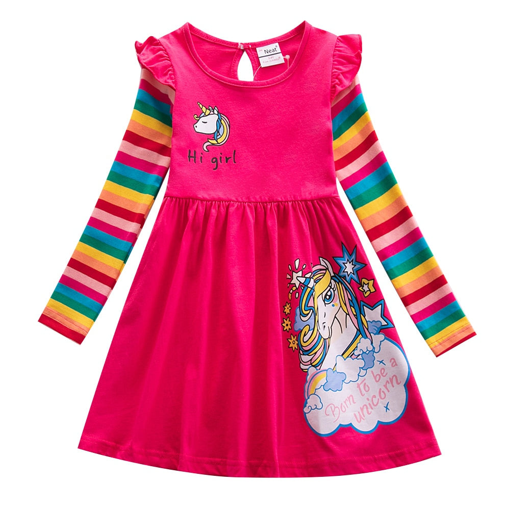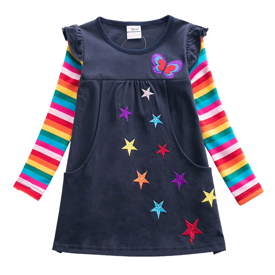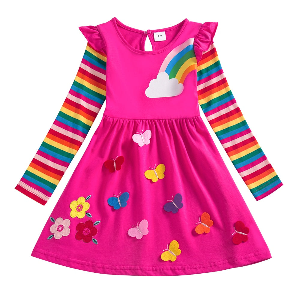 Este vestido superior de manga larga con rayas color caramelo, arcoíris y mariposas, brinda alegría y ilumina el ambiente con su colorido diseño. No importa qué tipo de ocasión sea, ¡esta será la elección perfecta para tu chica! ¡Gran regalo para tu encantadora hija!