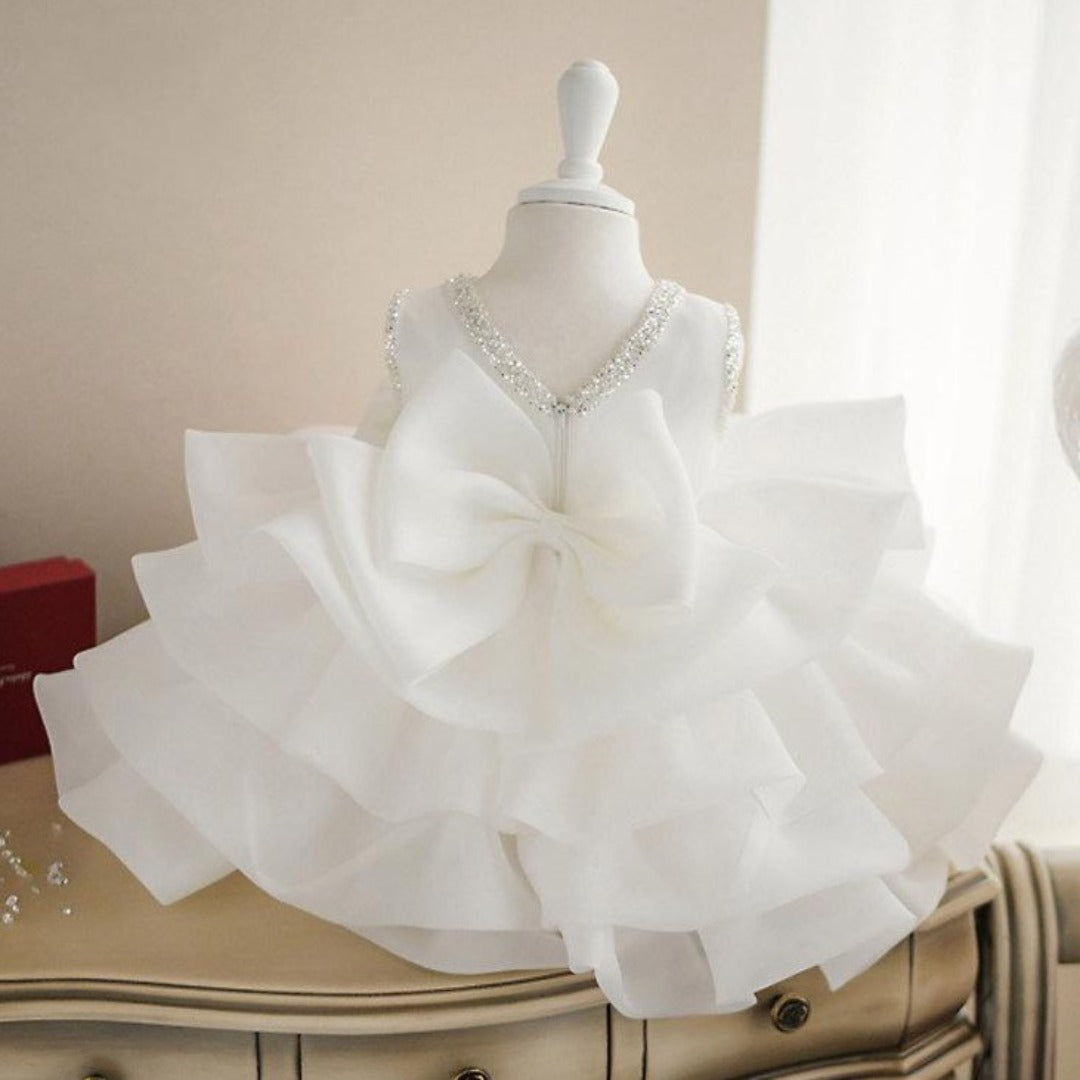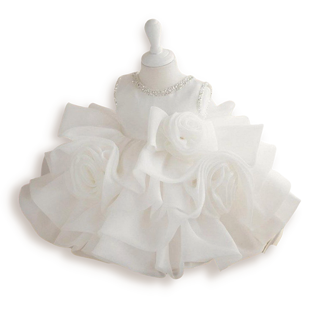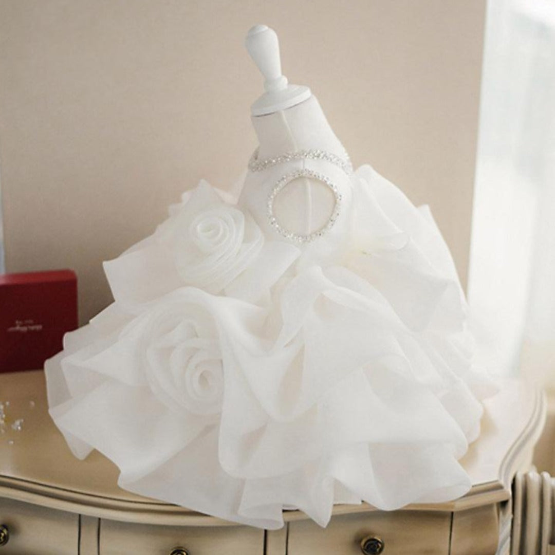 Elegant White Lace Layer Tulle Wedding and Baptismal Princess Ball Gown