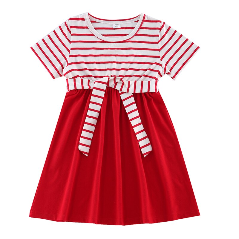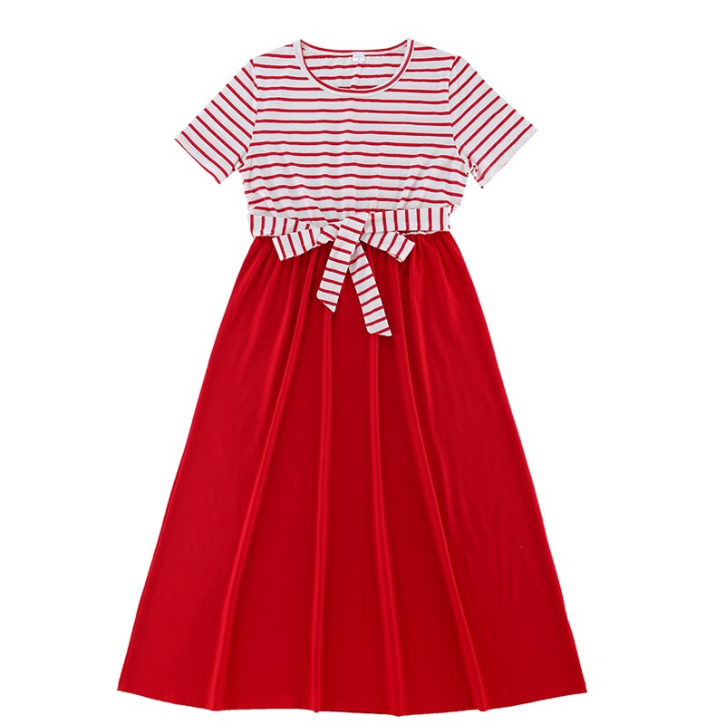 Trajes a juego para la familia Vestido a rayas con camiseta con botones de lazo Look familiar informal