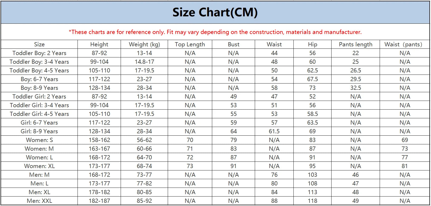 - Largo: Largo estándar de bañador para hombres y niños, y largo de traje de baño de una pieza para mujeres y niñas.
