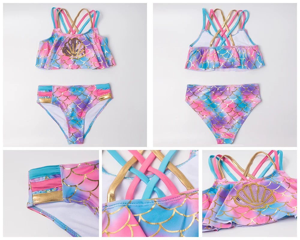 ¡Embárcate en una aventura inspirada en el mar con nuestro conjunto de bikini para niñas Fish Scale para niñas!