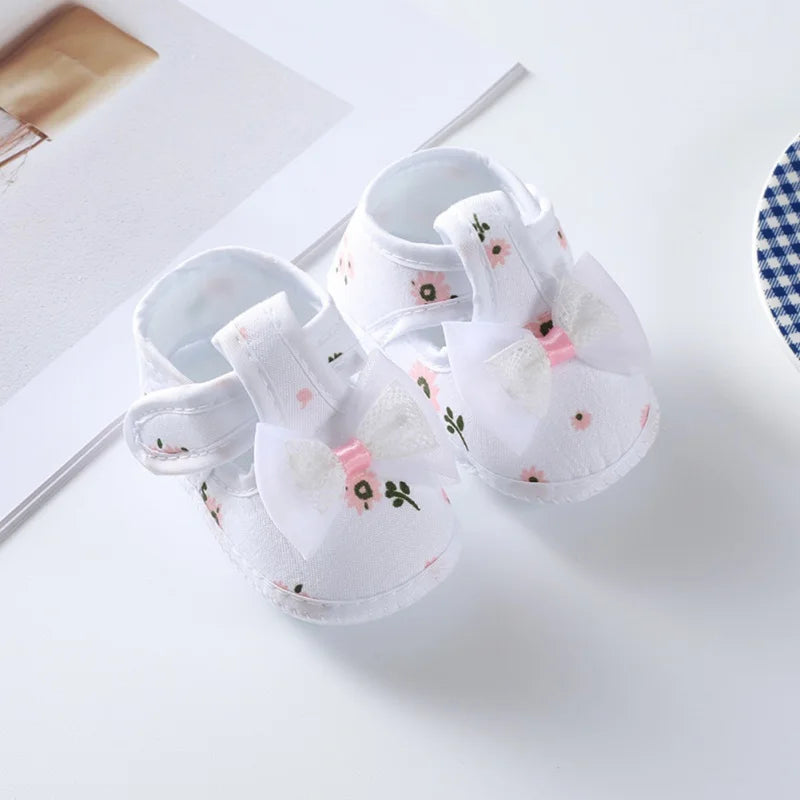 Zapatos de bebé niña con suela suave y lazo floral - 1Lovebaby