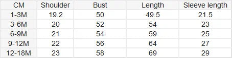 - Tabla de tallas: (1 cm = 0,3937 pulgadas)