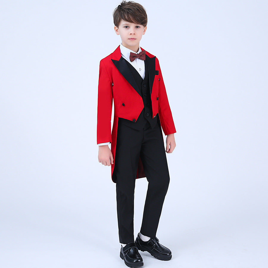 - El conjunto de 5 piezas incluye el esmoquin, camisas interiores, pantalones, pajarita y un chaleco interior.