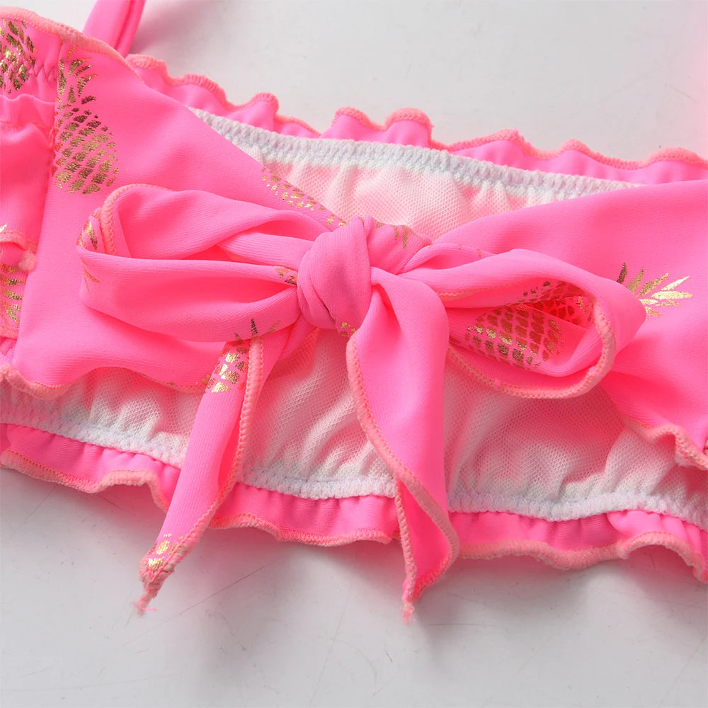 Presentamos nuestra encantadora creación: ¡Conjunto de traje de baño bikini de piña para niñas!