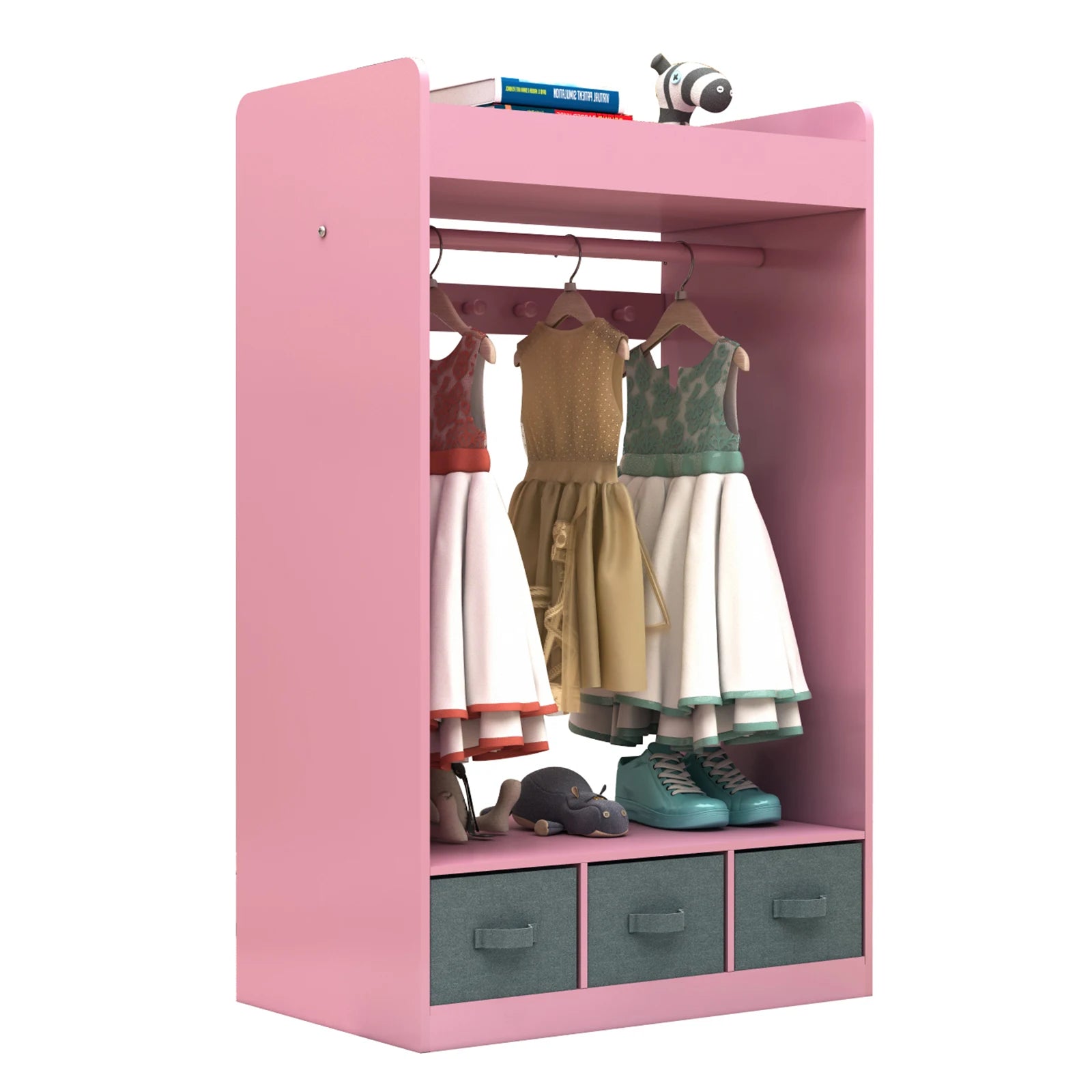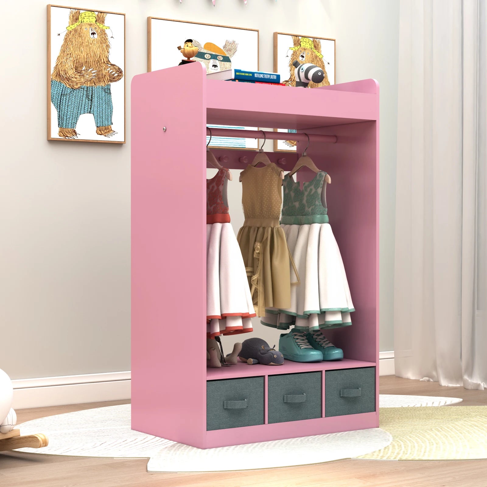 Armario infantil de disfraces con espejo - Organizador colgante abierto con estantes, ganchos y compartimentos de almacenamiento