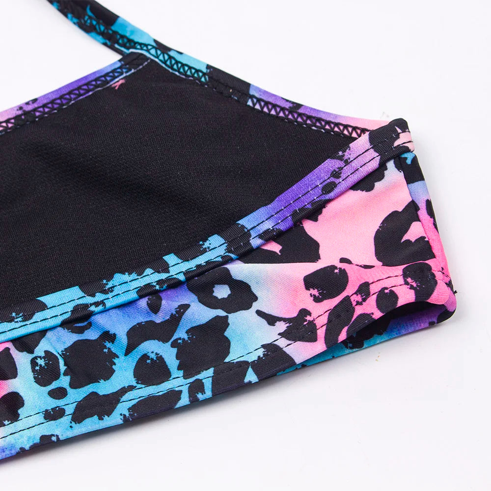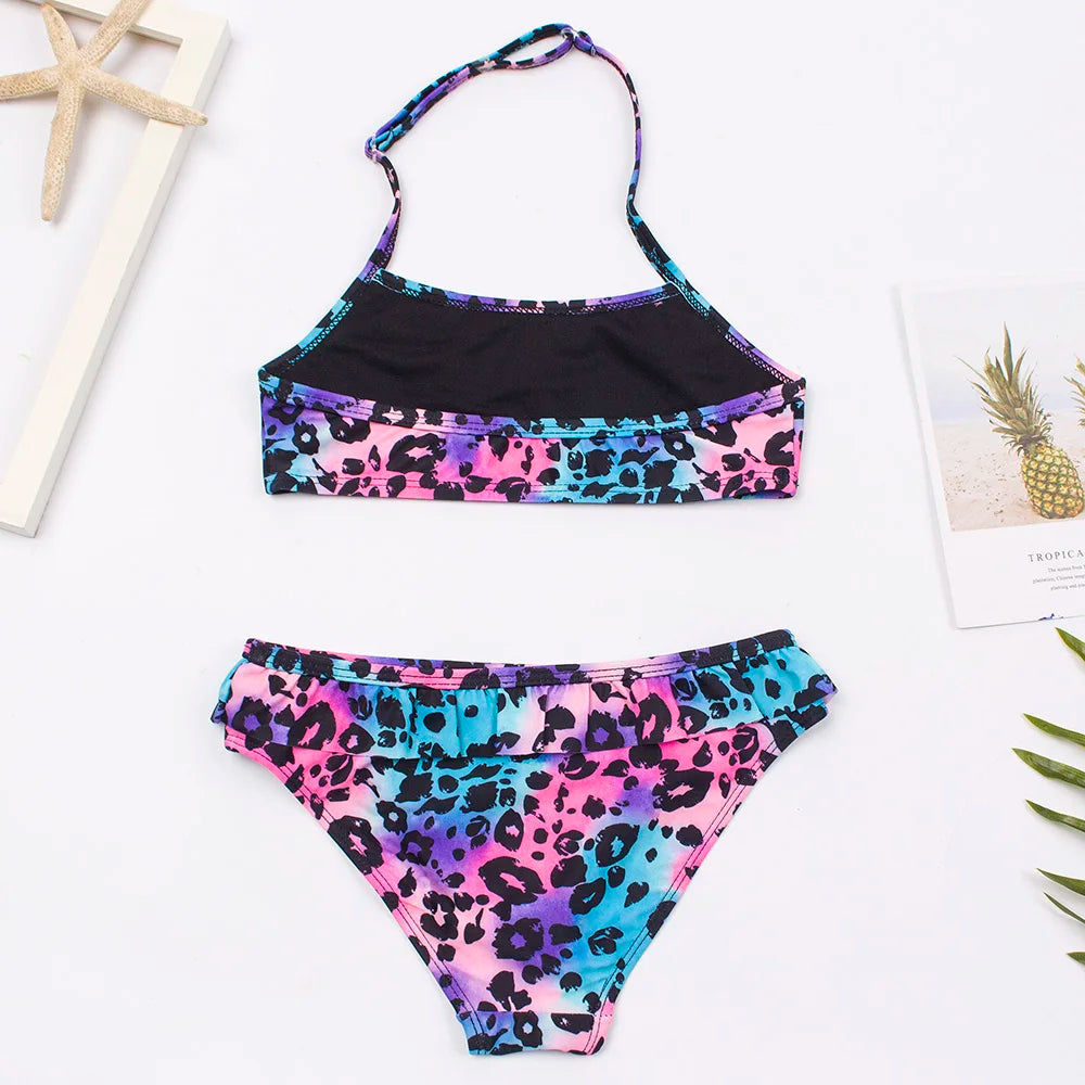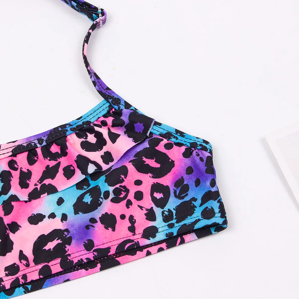 Conjunto de traje de baño para niñas con estampado de leopardo