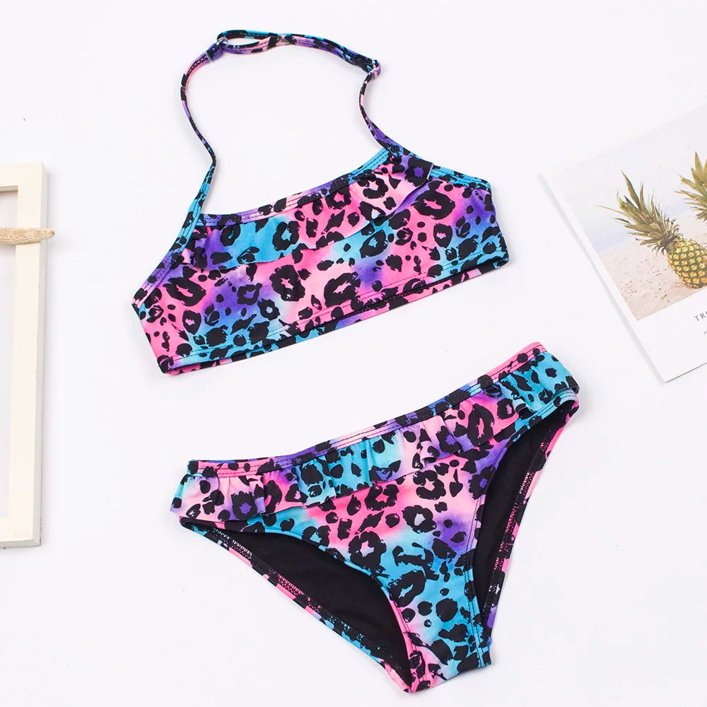 Prepara a tu incipiente fashionista para un verano elegante con nuestro adorable traje de baño de dos piezas. Diseñado para niñas de 7 a 14 años, este conjunto presenta un moderno estampado de leopardo que añade un toque de estilo salvaje a su colección de trajes de baño. Confeccionado con una mezcla de poliéster, nailon y spandex de alta calidad, este traje de baño garantiza durabilidad y comodidad para usarlo durante todo el día.