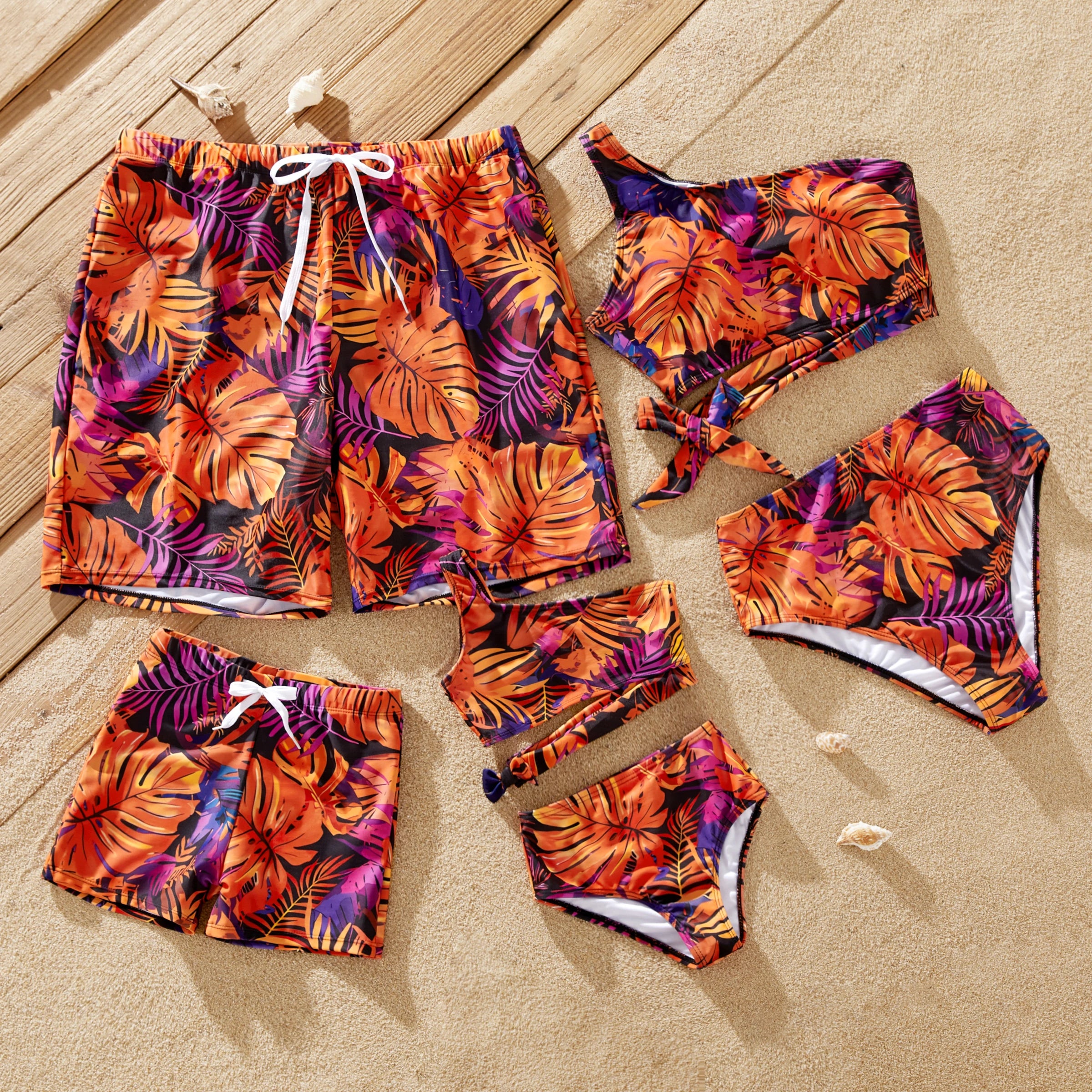Trajes de baño familiares a juego: calzoncillos con cordón floral o top de bikini bandeau