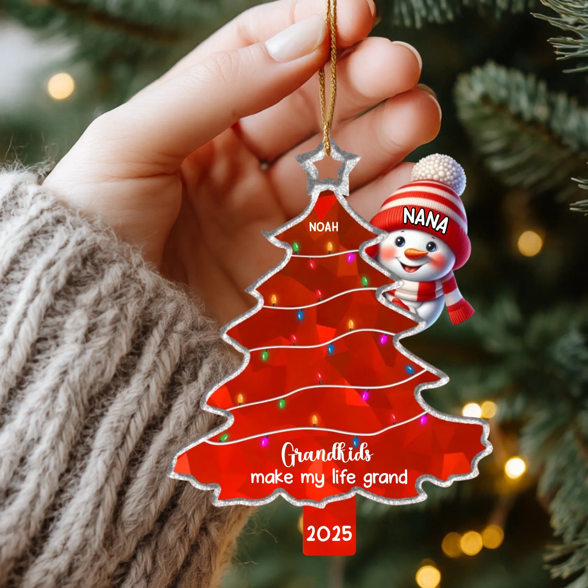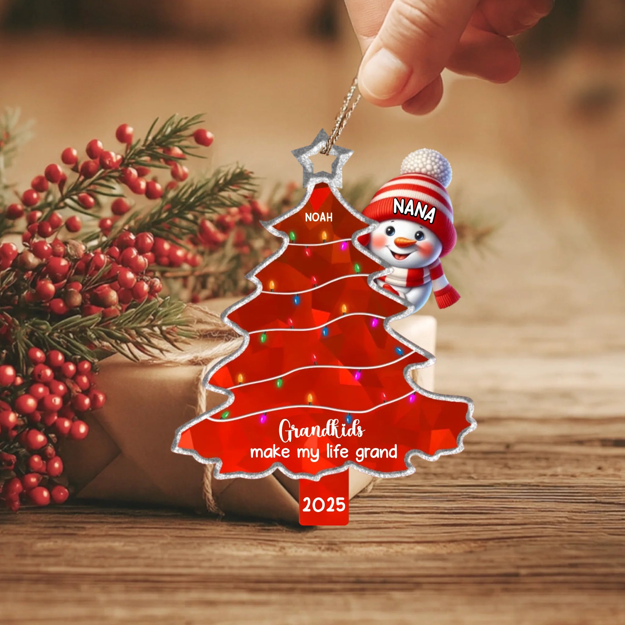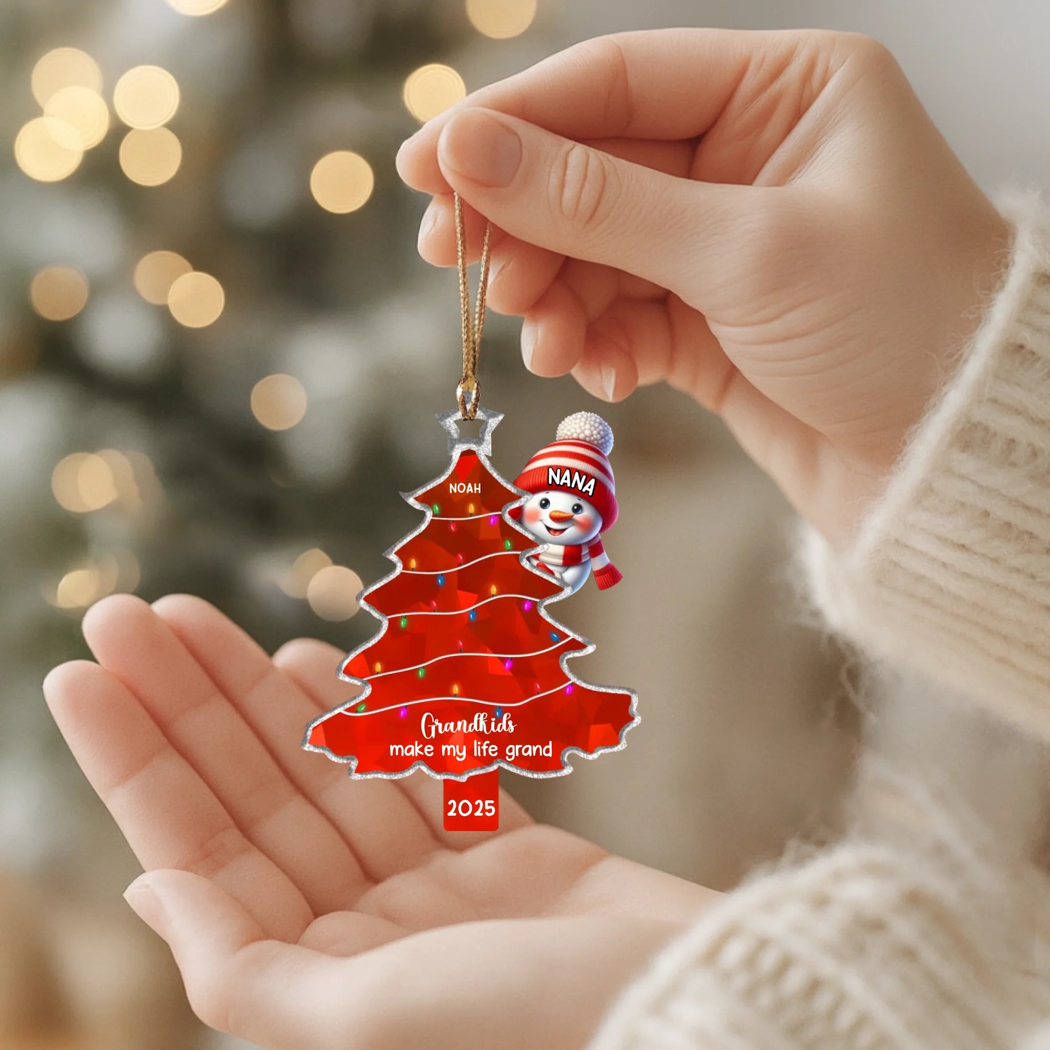 Personalized Grandma & Grandkids Acrylic Ornament – Custom Name Snowman Christmas Tree Decoration 2025