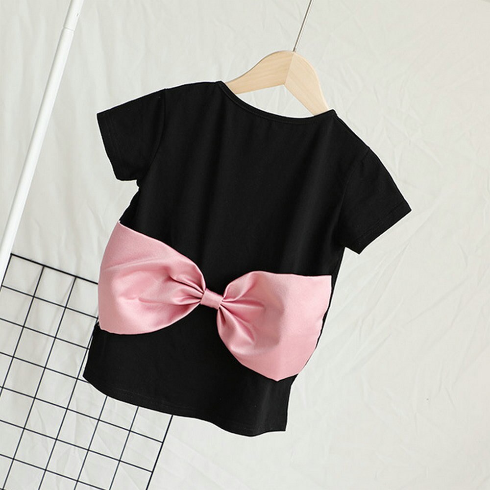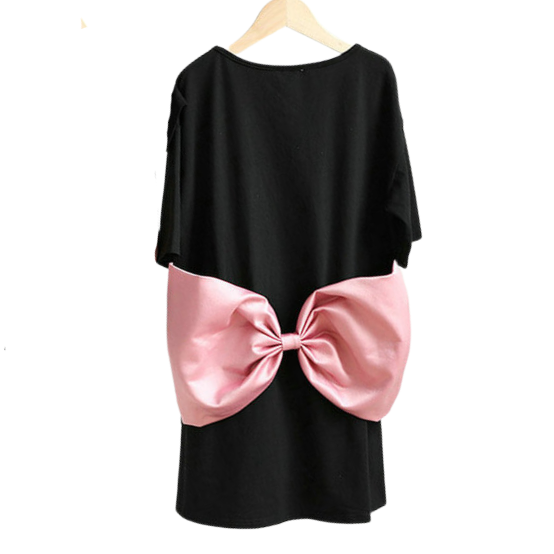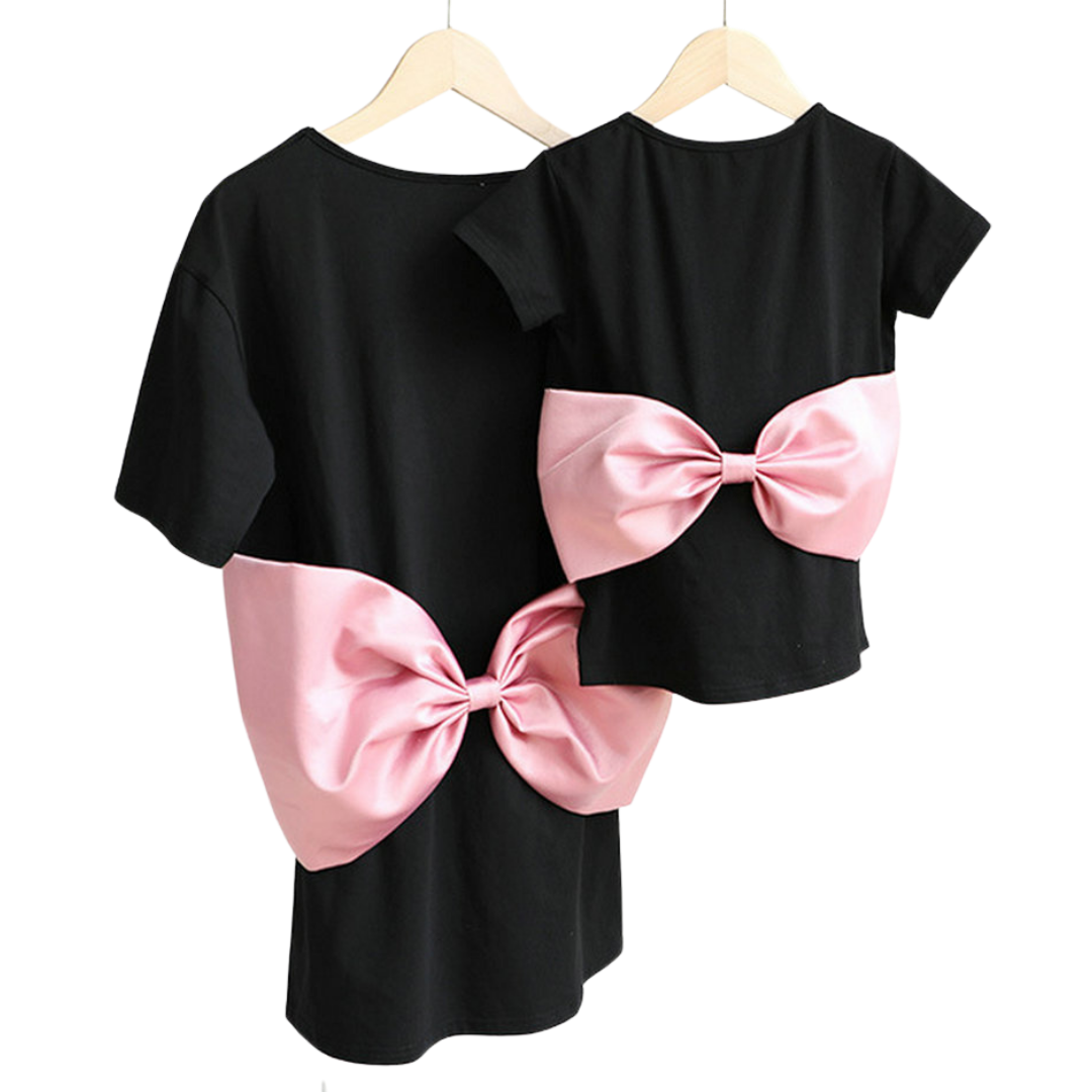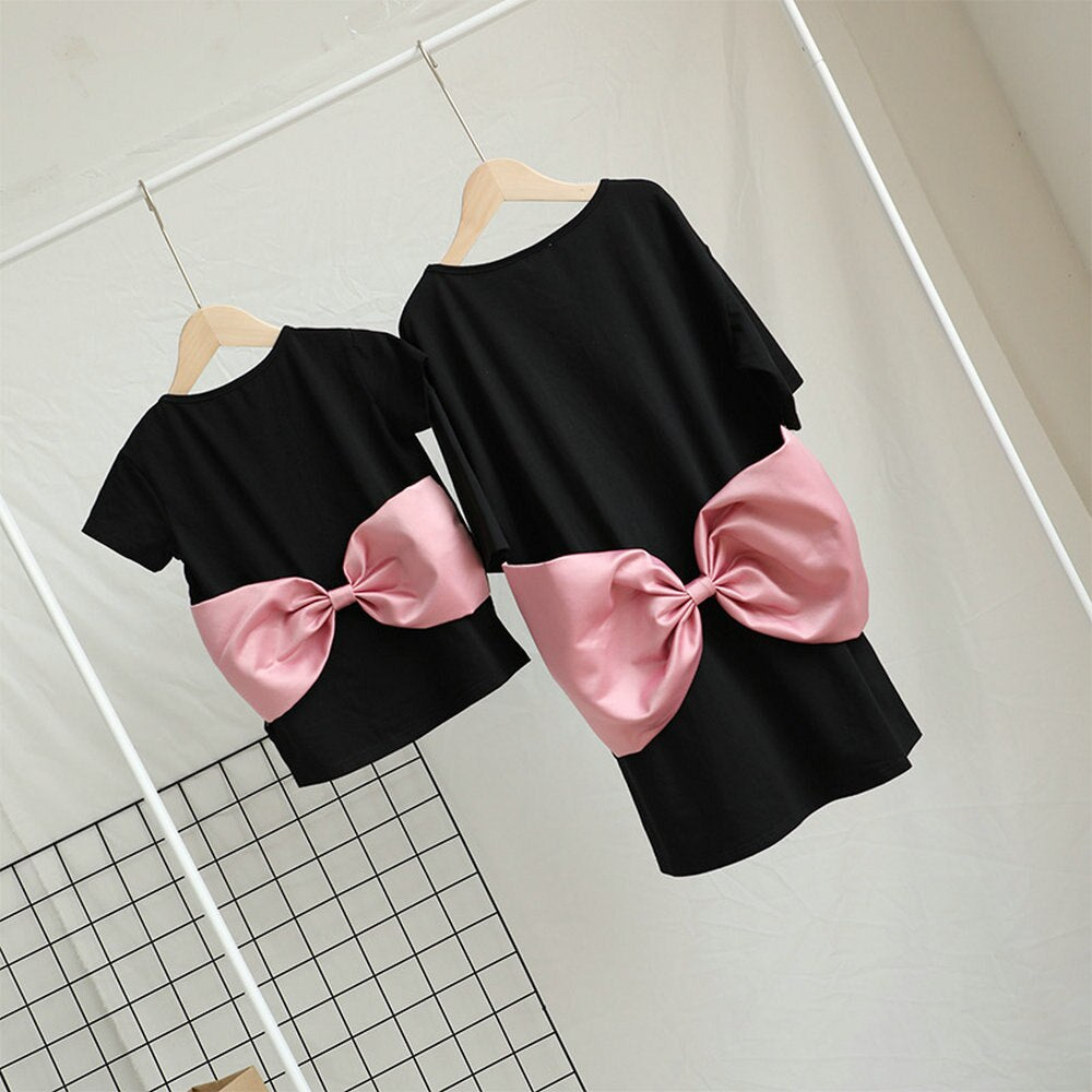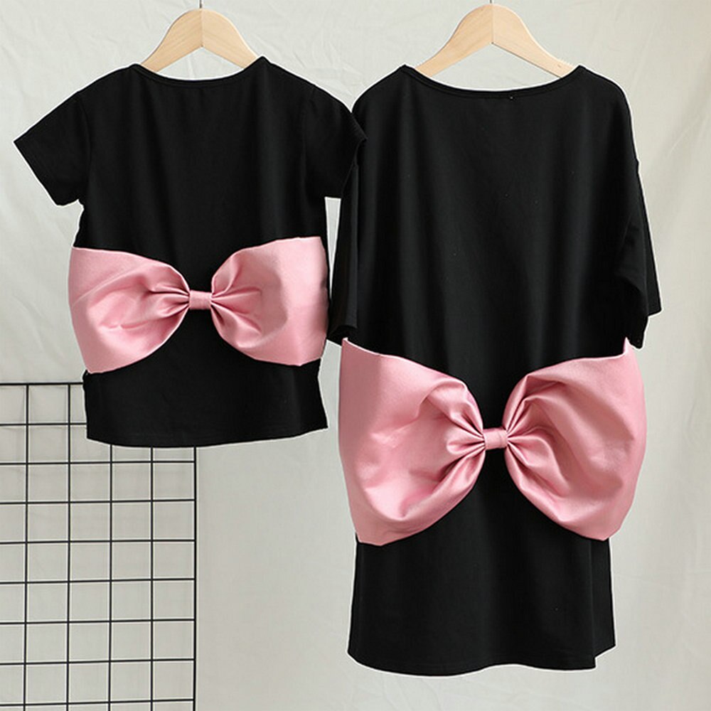 Vestido estilo camiseta rosa con diseño de lazo grande para mamá y yo