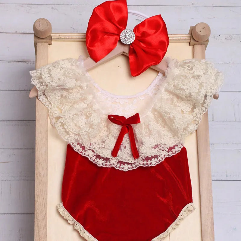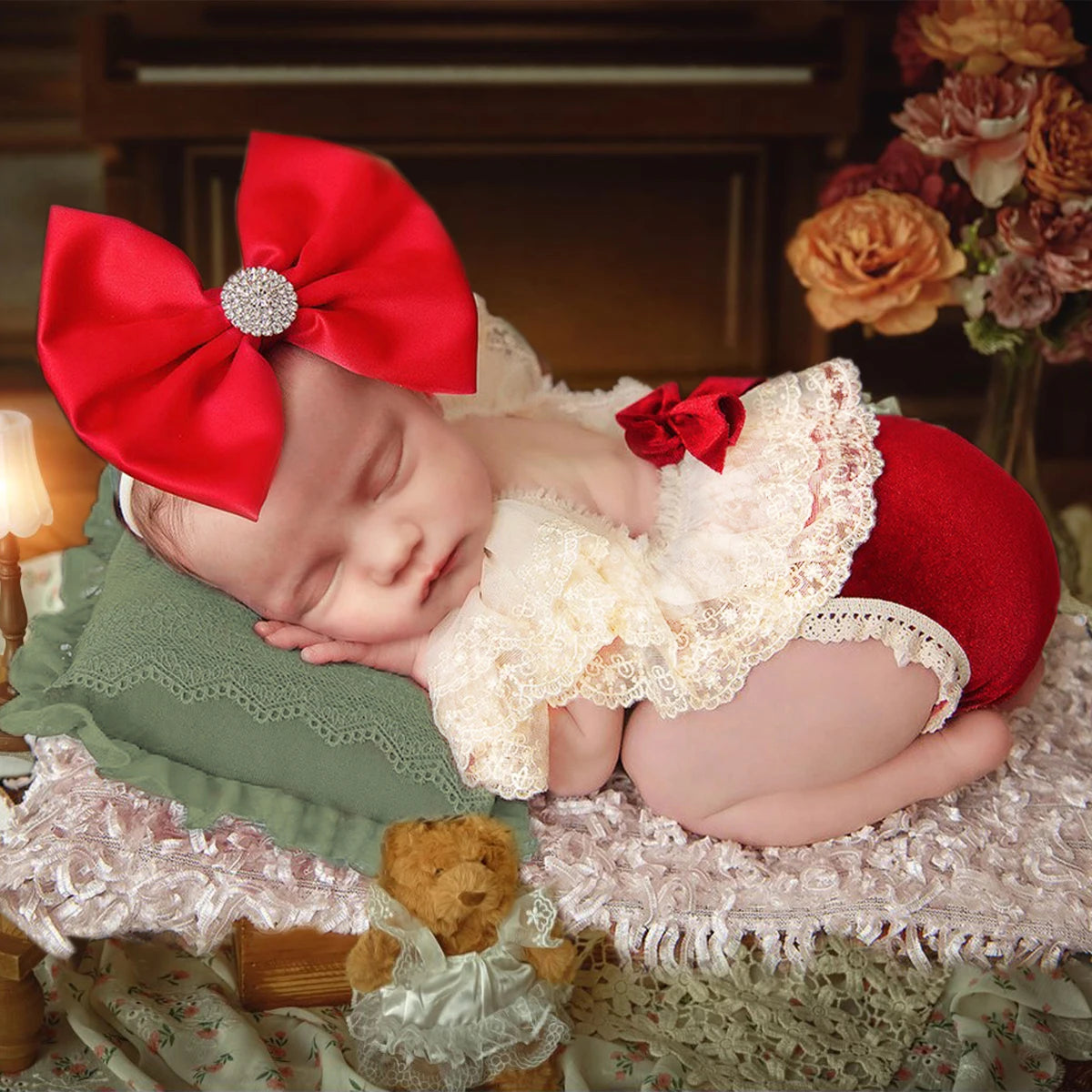 Cautiva cada momento con nuestro juego de diadema roja con diamantes de imitación para fotografía de recién nacidos