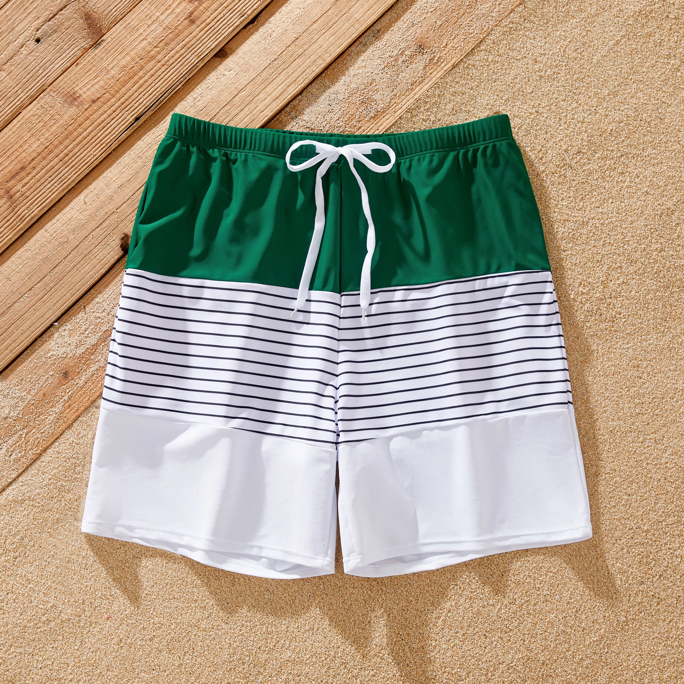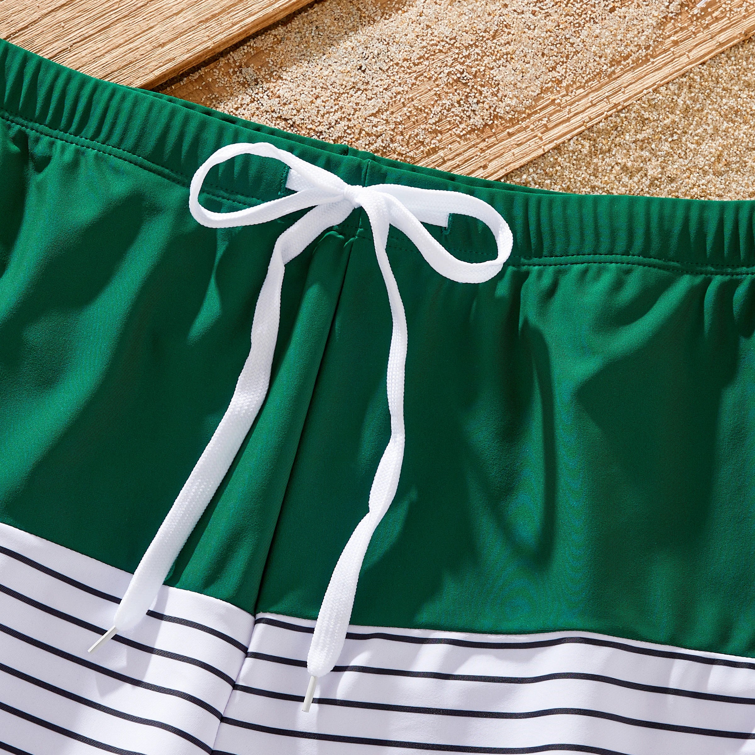 Perfecto para vacaciones familiares : haz las maletas y dirígete a la playa con estilo con nuestros trajes de baño familiares a juego. Con rayas verdes vibrantes y un diseño coordinado, seguramente causarán sensación dondequiera que vayas.