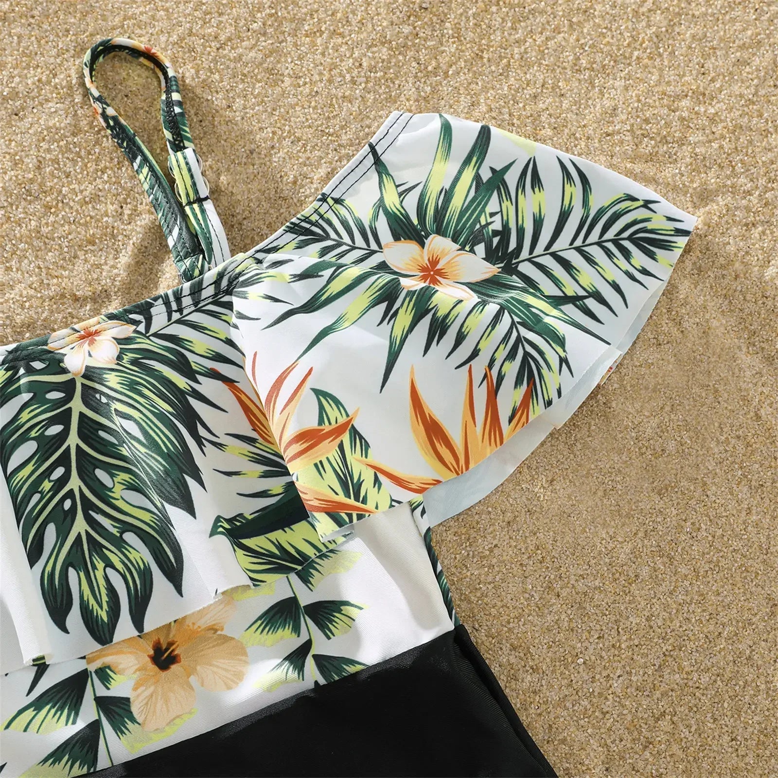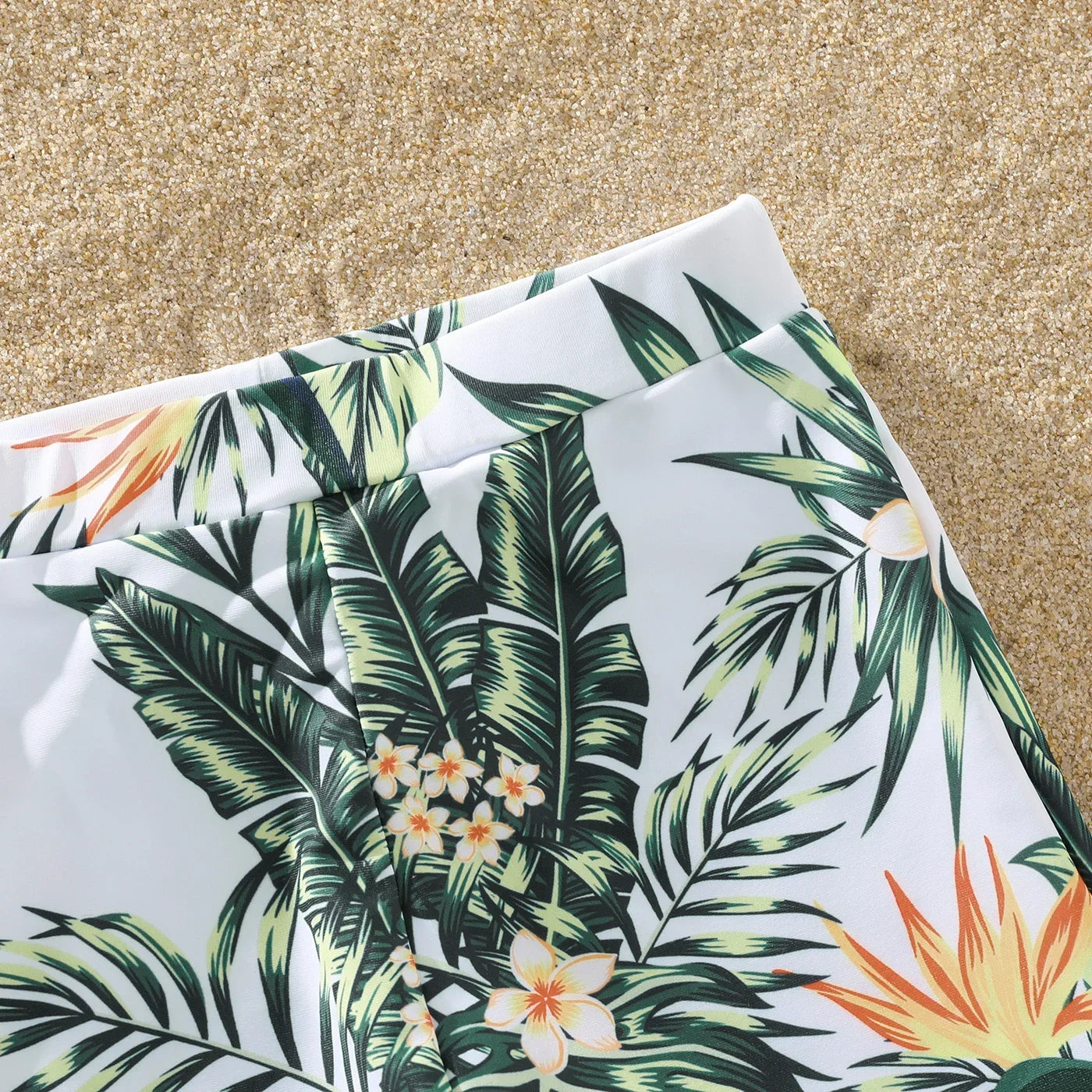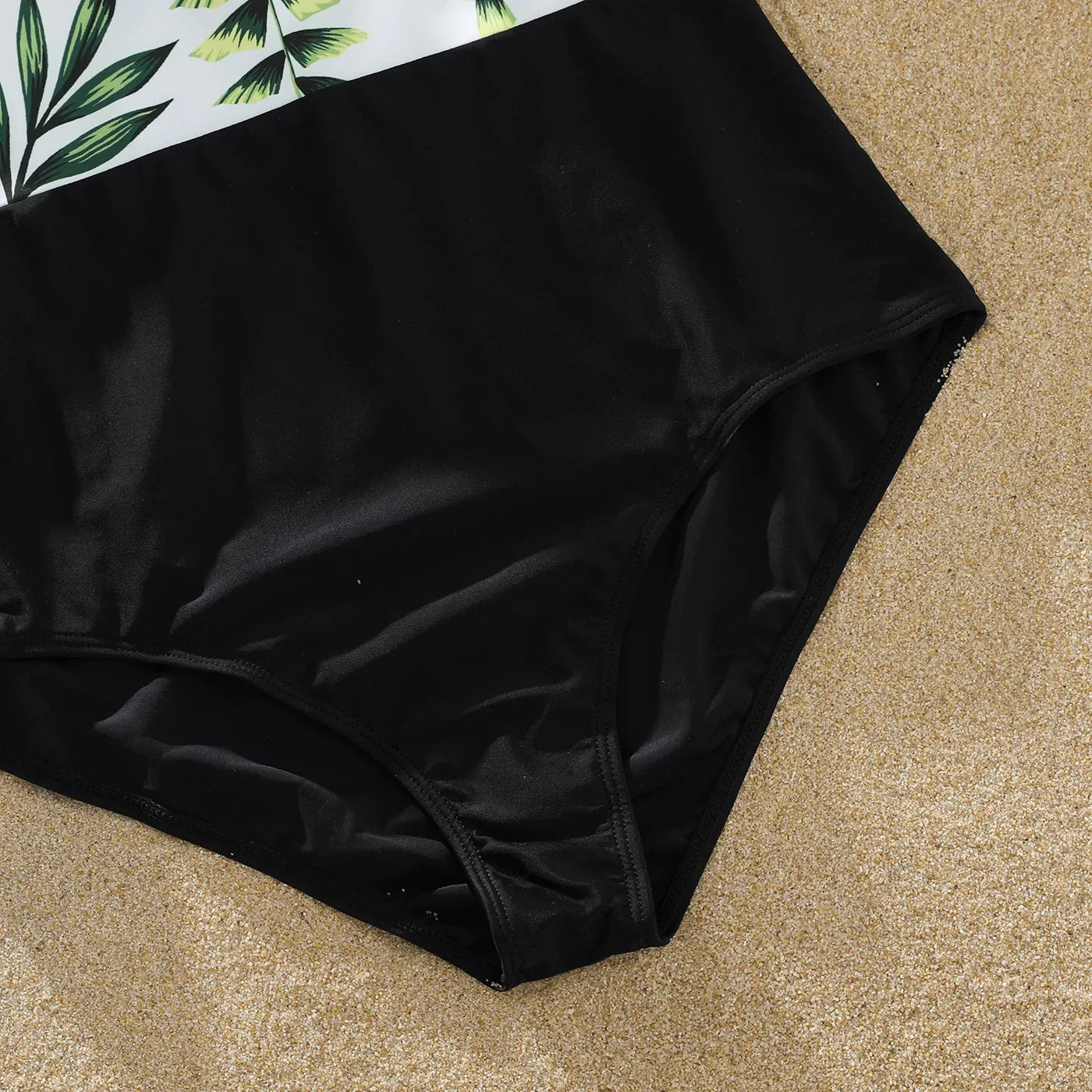 Conjunto de traje de baño con estampado de plantas a juego familiar de verano