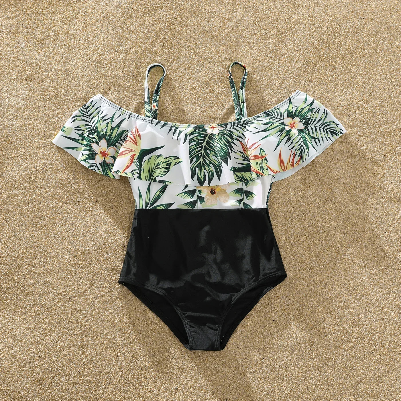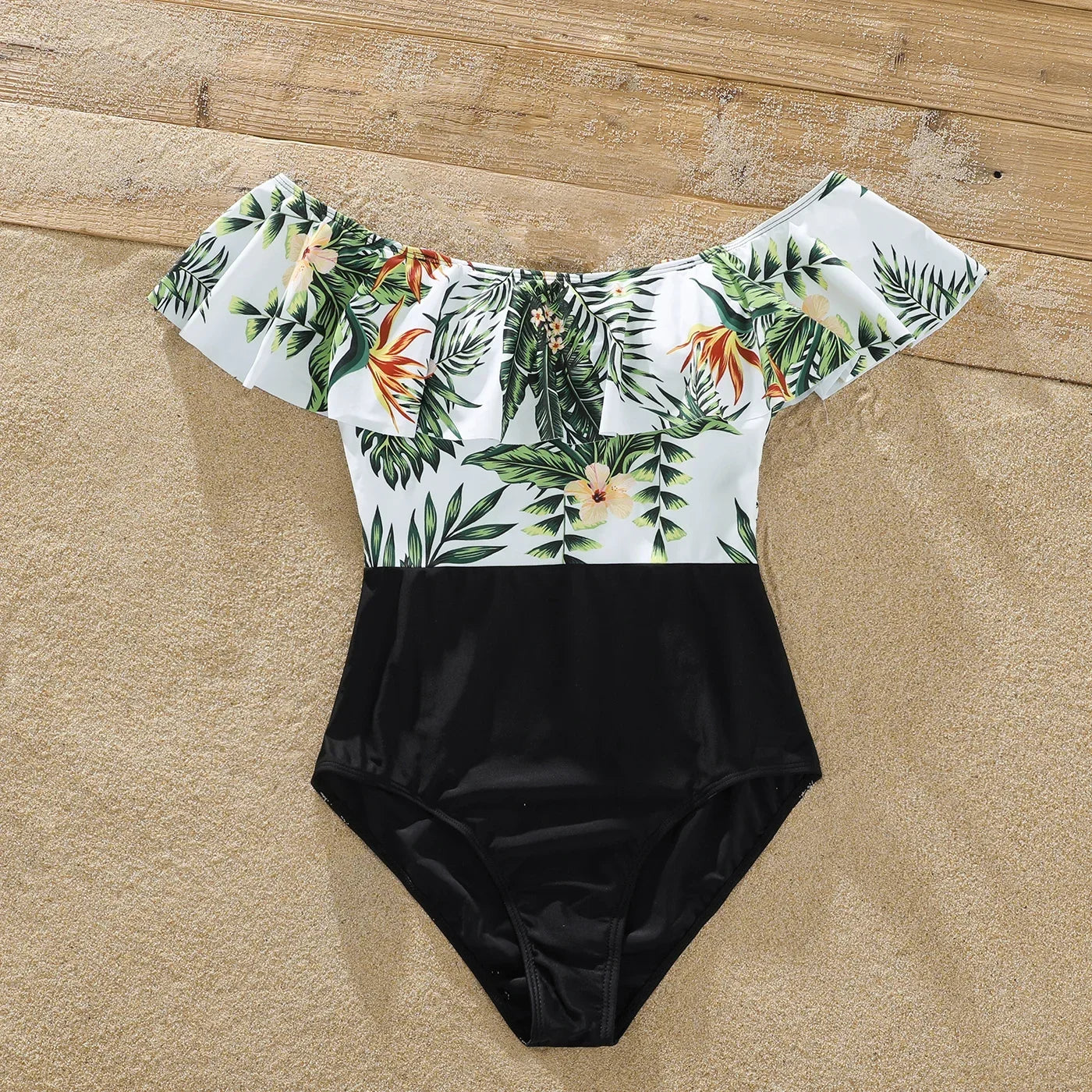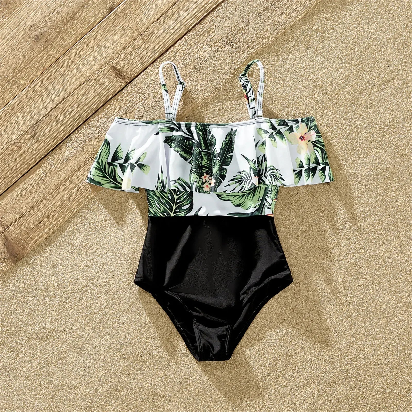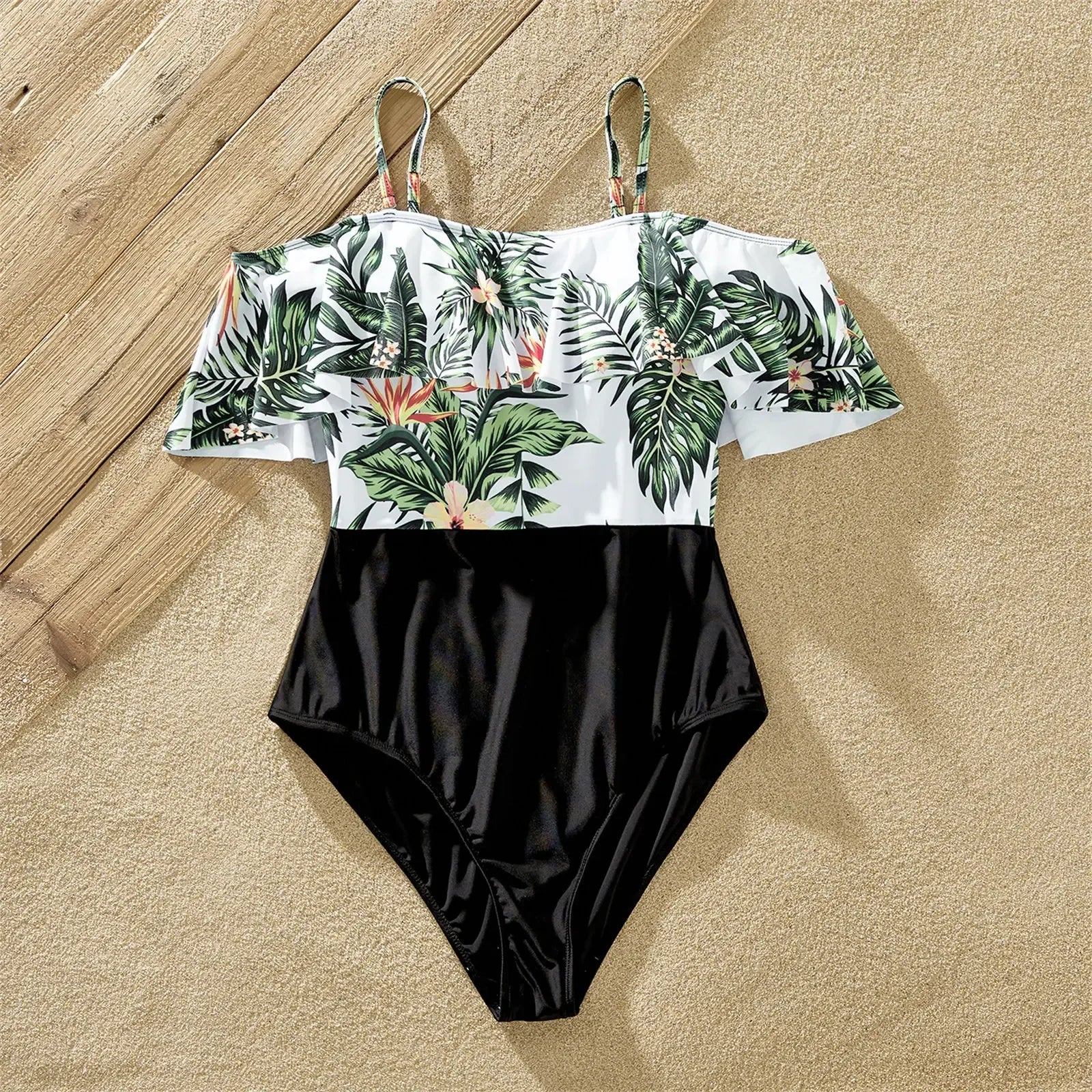 Conjunto de traje de baño con estampado de plantas a juego familiar de verano