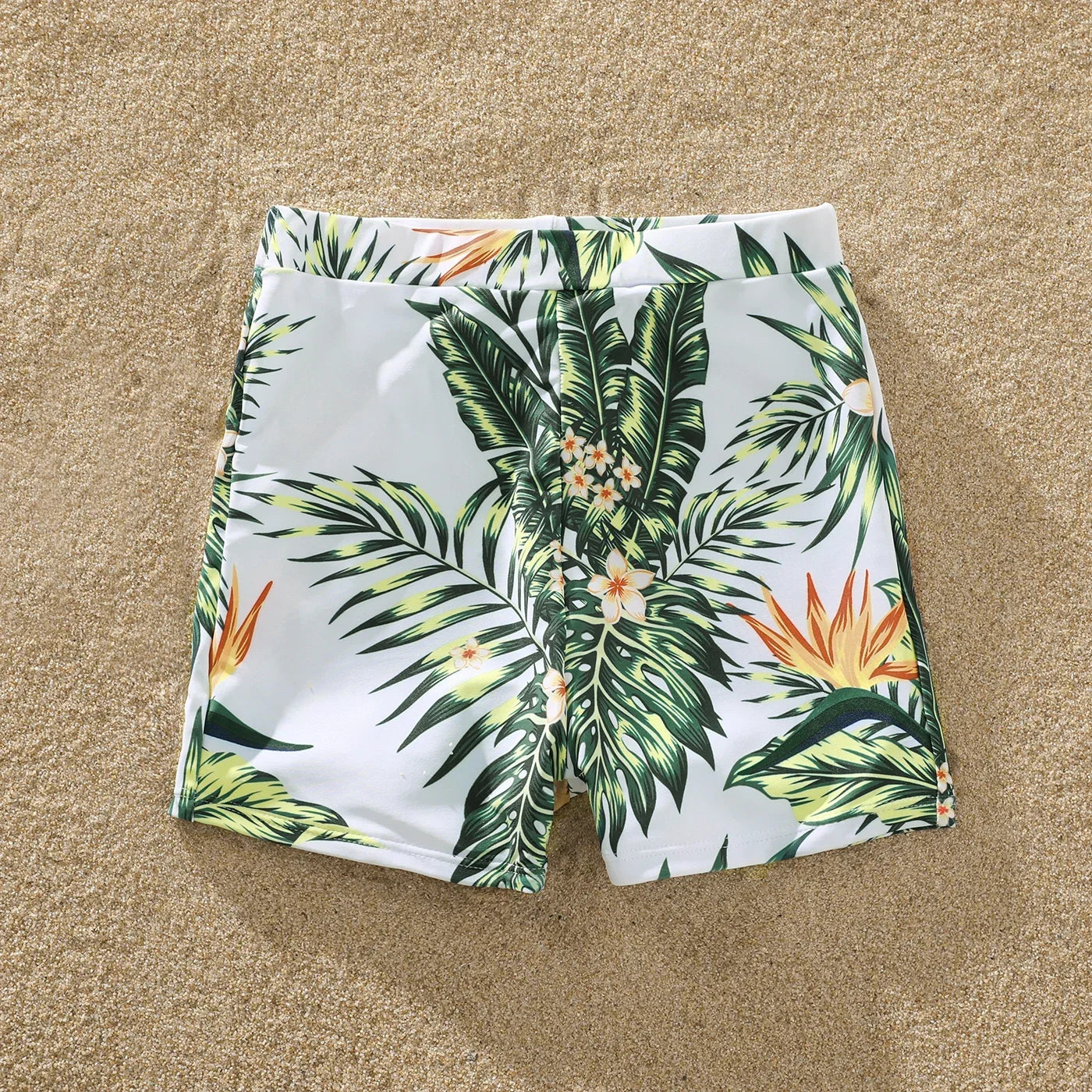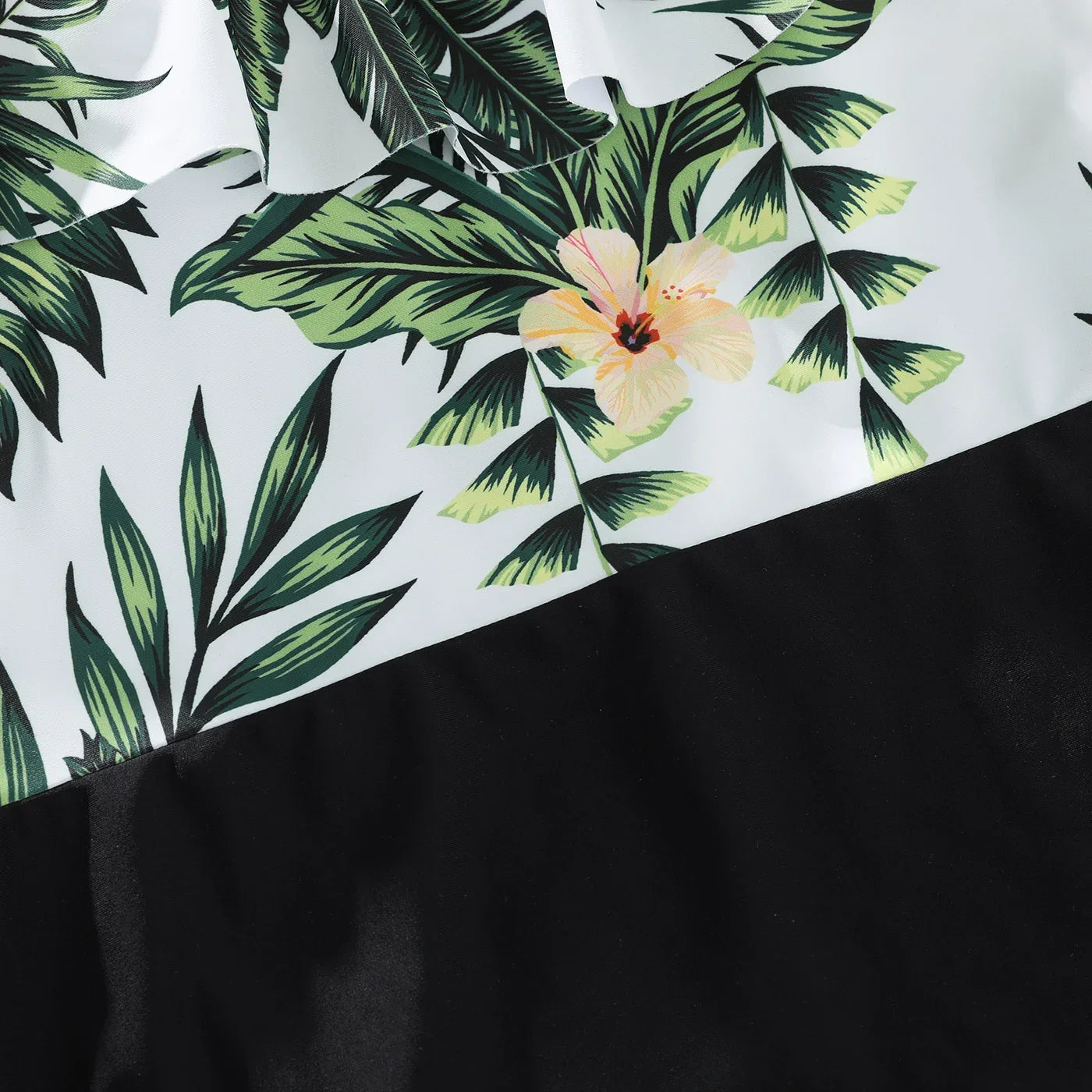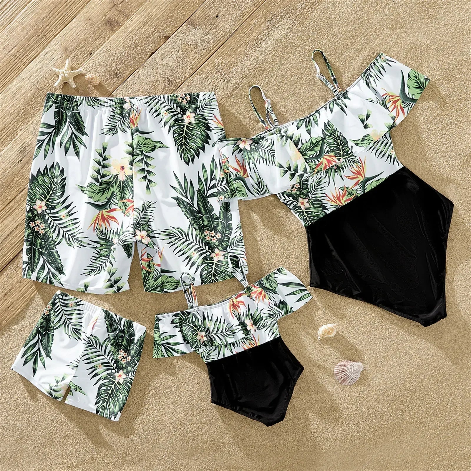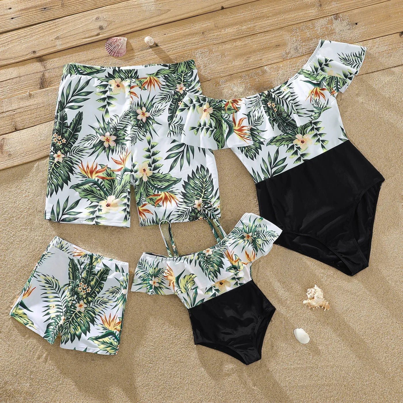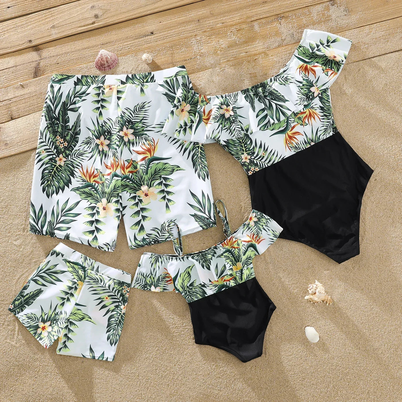 Introducción del producto: Presentamos nuestro conjunto de traje de baño con estampado de plantas a juego para la familia de verano, diseñado para ofrecer estilo y comodidad. Abrace las vibrantes vibraciones tropicales con este encantador conjunto diseñado para madres, padres y niños por igual.