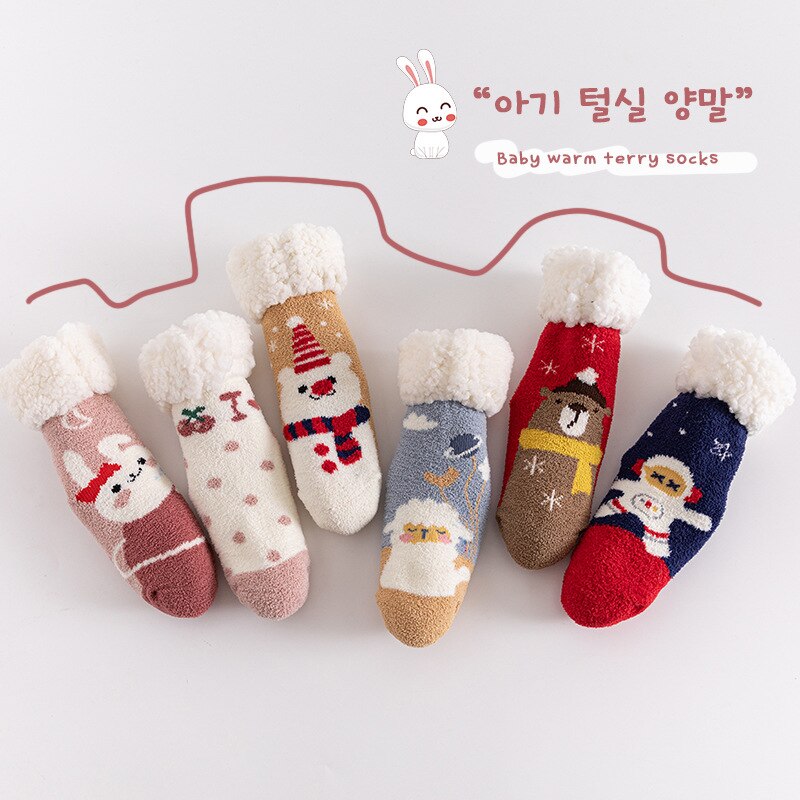 Calcetines de bebé antideslizantes gruesos y cálidos